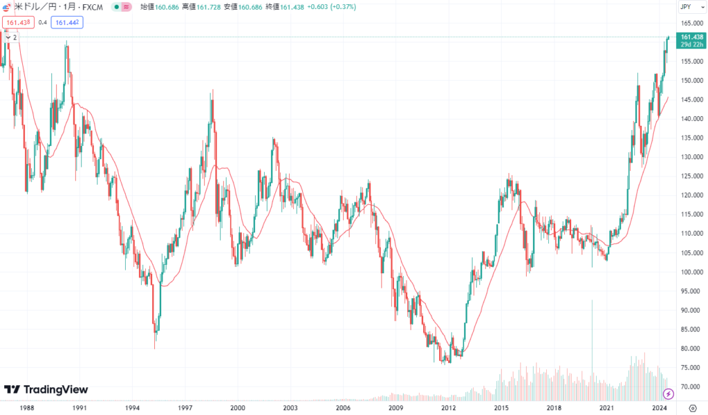 1986年12月以来、約38年ぶりの円安水準。市場では、日本政府が円買いドル売りの為替介入に動くとの見方がある。