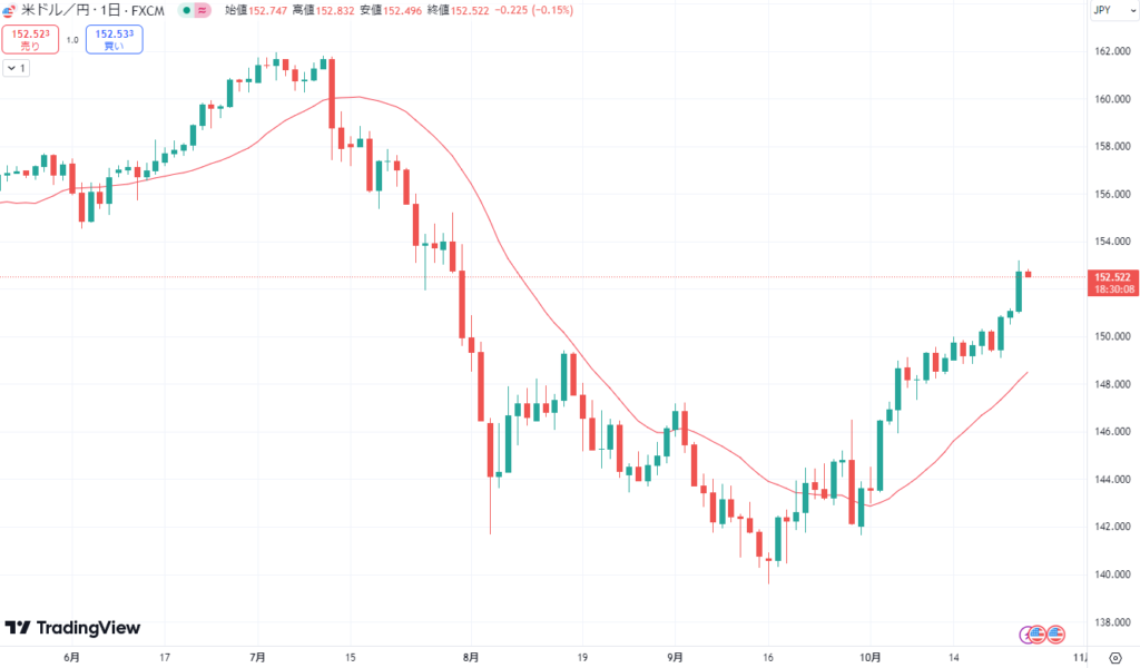 オーリーさん、こんにちは。10月23日の為替市場では円が一時1ドル152円台まで下落したと聞きました。