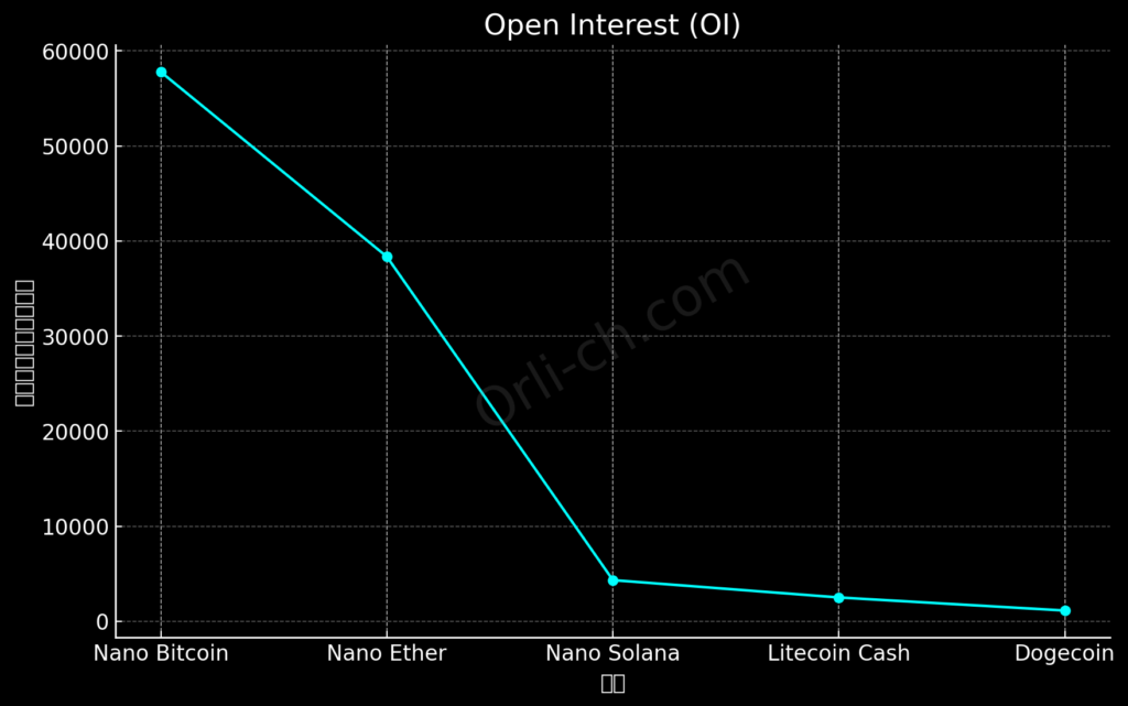 - Nano BitcoinとNano Etherが最もOIが高く、市場の関心が集中している。