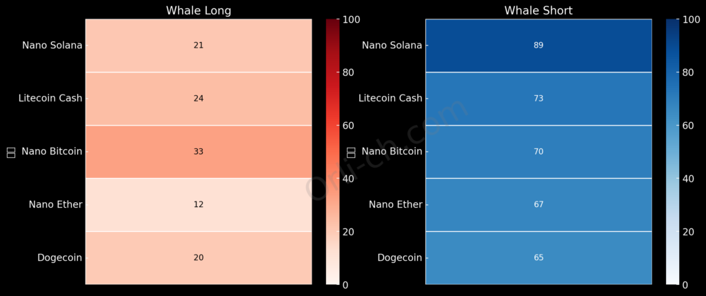 | 弱気シナリオ | 高い | Nano Ether・Nano Solanaの大幅ネットショート、Dogecoinのクジラショート優勢。 |