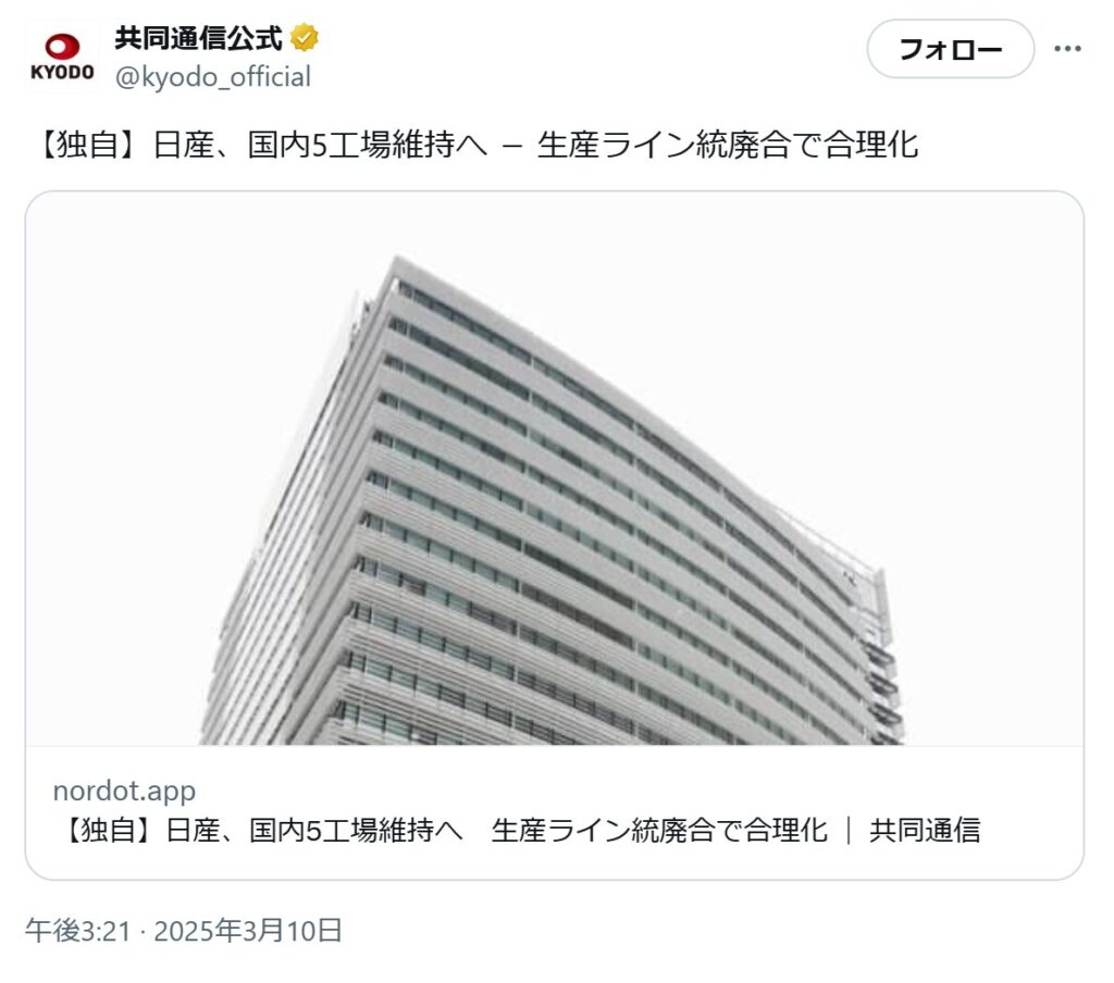 日産自動車は経営再建に向けた合理化策を進めており、国内にある5つの完成車工場はすべて維持する方針を決定しました。