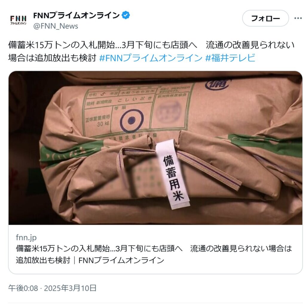 他にも備蓄米15万トンの入札が開始されたそうですね。