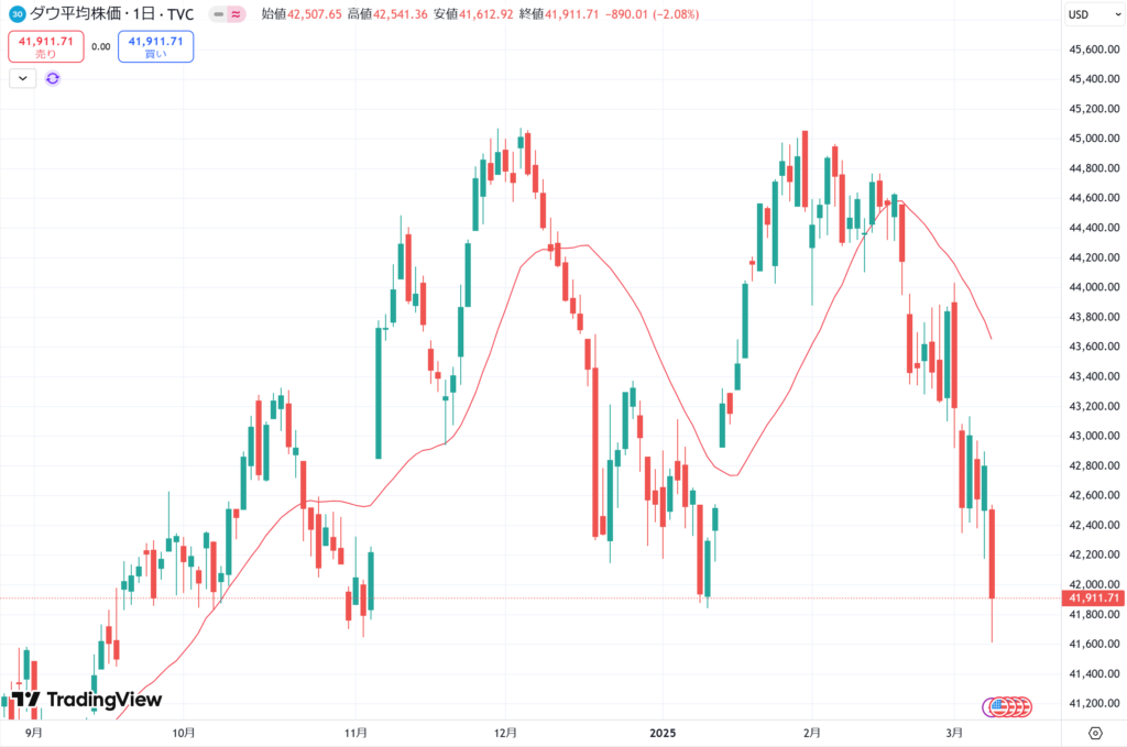 最終的には前週末比で890ドル安の4万1,911ドル71セントで取引を終えたとのことです。