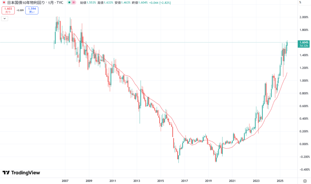 新発10年国債利回りが一時1.610%に到達。2008年以来、約17年ぶりの水準。詳細▶ https://t.co/8P3nuTZJmc#経済 #日銀 #金利