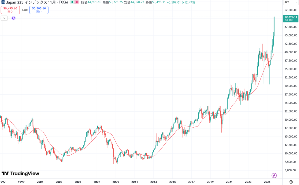 日経平均は5万円を突破、次は5万2,000円へ。