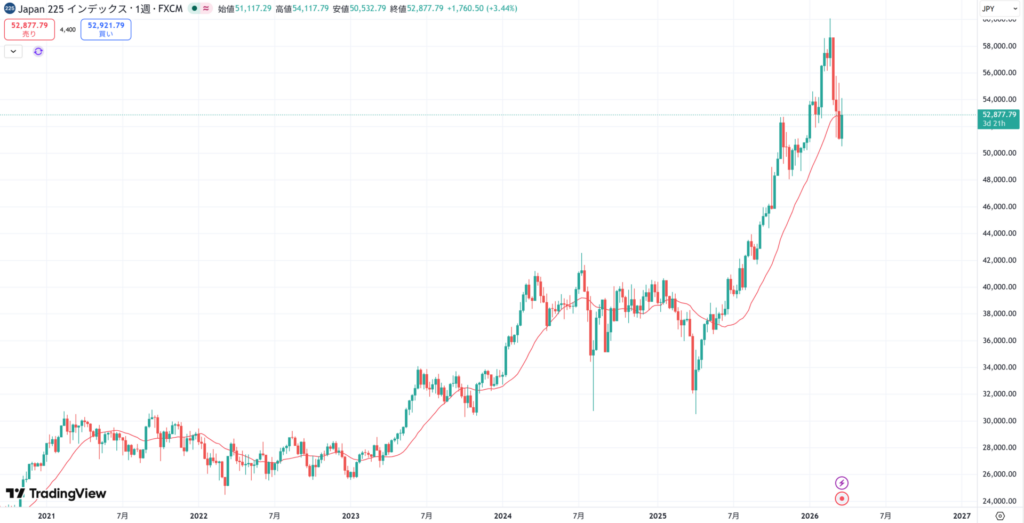 19日の東京株式市場で日経平均株価は反落し、一時、前日終値より1500円超安い5万3600円台をつけた。前日に節目の5万5000円台を回復したばかりだった。