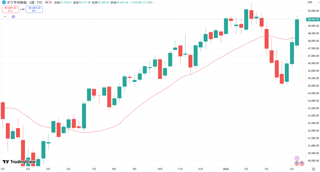 NYダウが4万9,447ドルと紛争前水準に回復へ。
