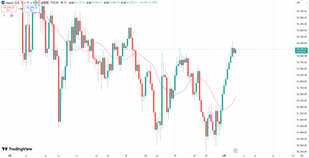日経平均株価は前日より2,675円上昇し、5万3,739円で取引を終えました。