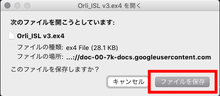 すると、このようなウィンドウが表示されるので、「ファイルを保存」を押してください。