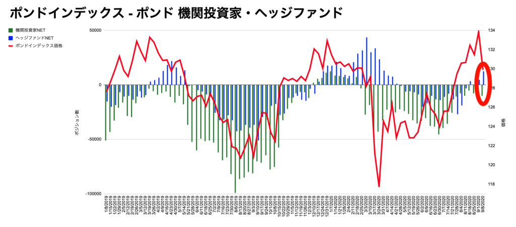 First, Institutional investors short (sell) the pound and we see that hedge funds are long (buy).