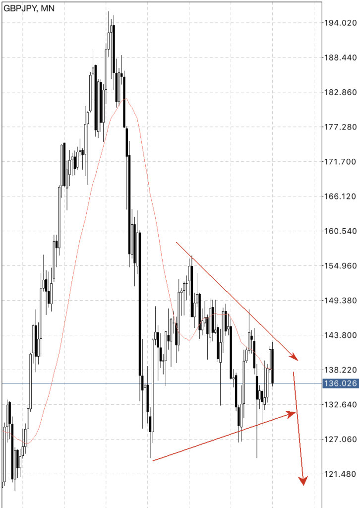 When you look at the monthly leg of the pound-yen, it's just triangular crosses We are looking at it as.