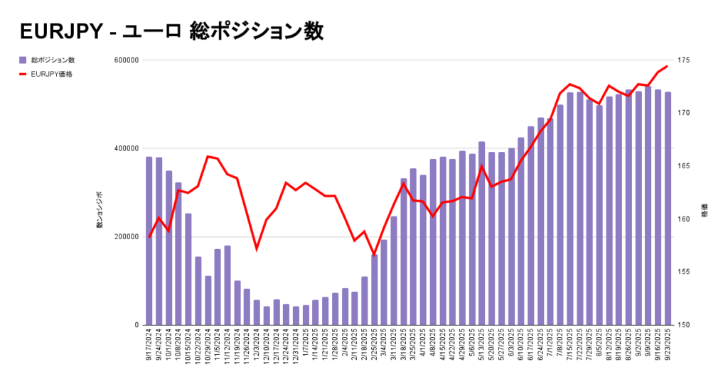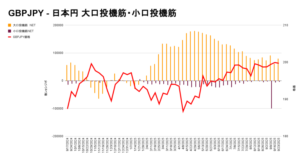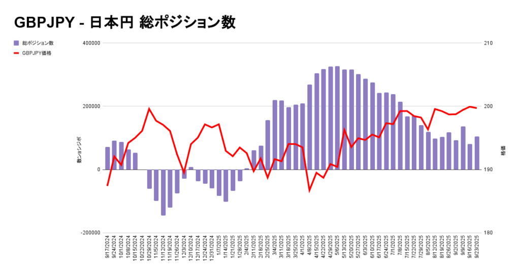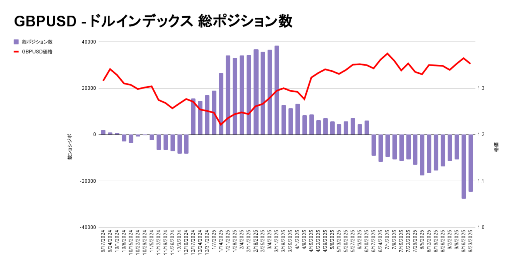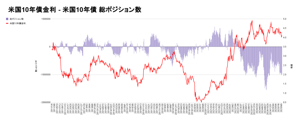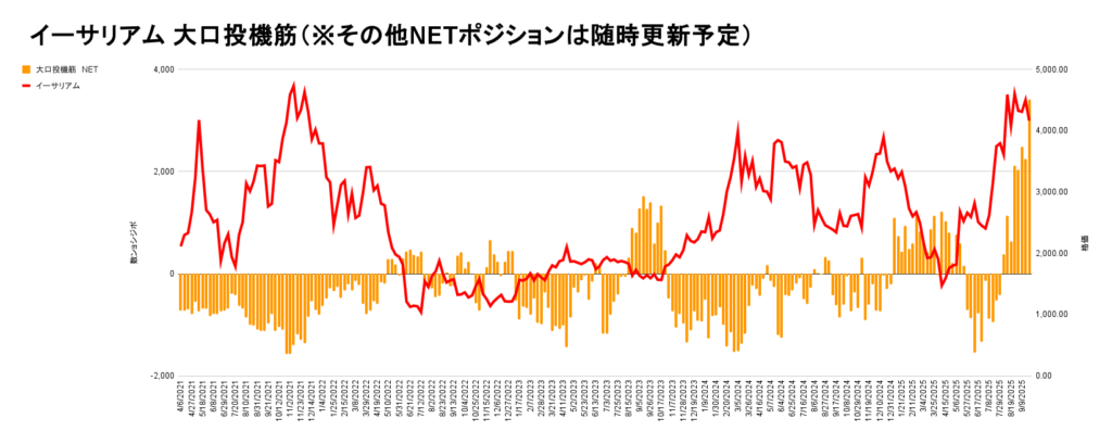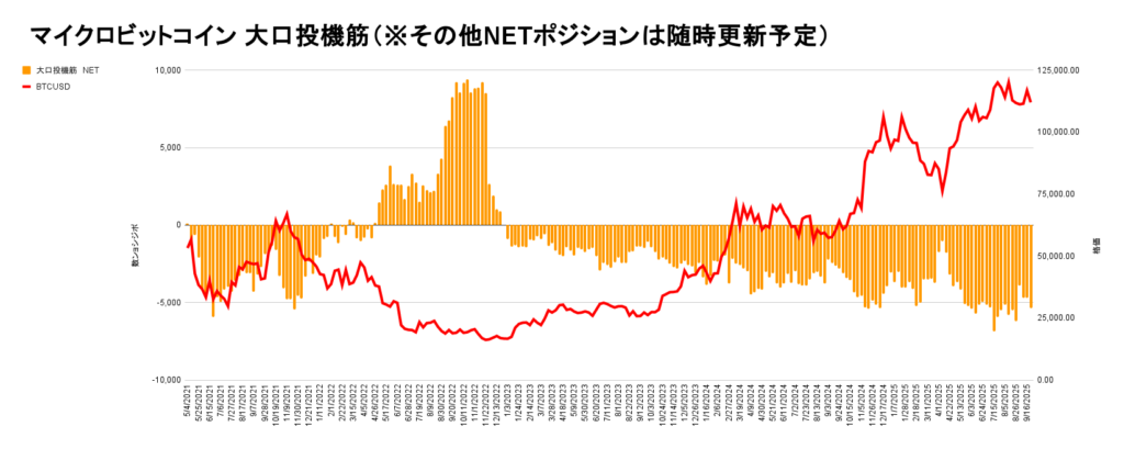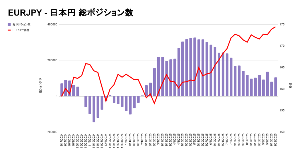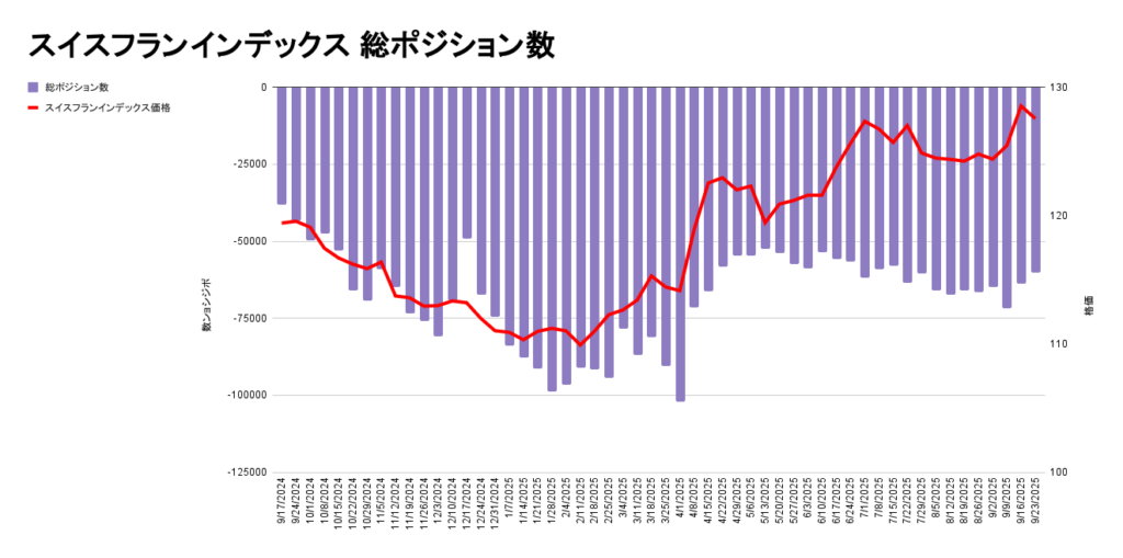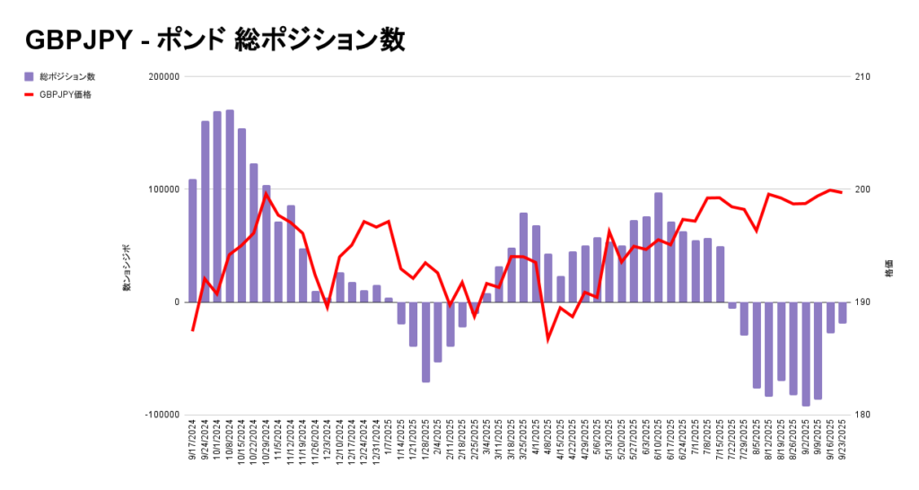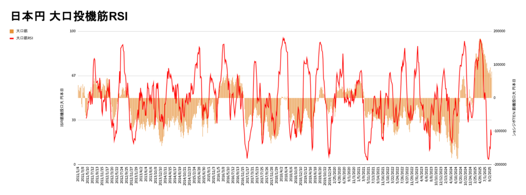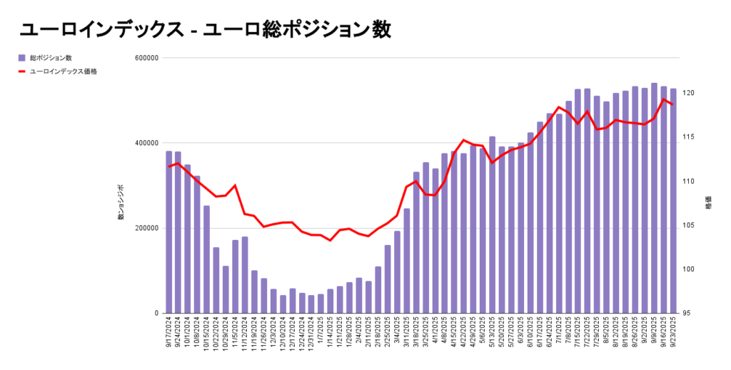 ※2025年10月現在、データ元のCFTCが米国政府閉鎖の影響を受けて最新のデータが公開されておりません。政府閉鎖が解除されてCFTCの最新データが更新され次第、投機筋チャートを更新致します。