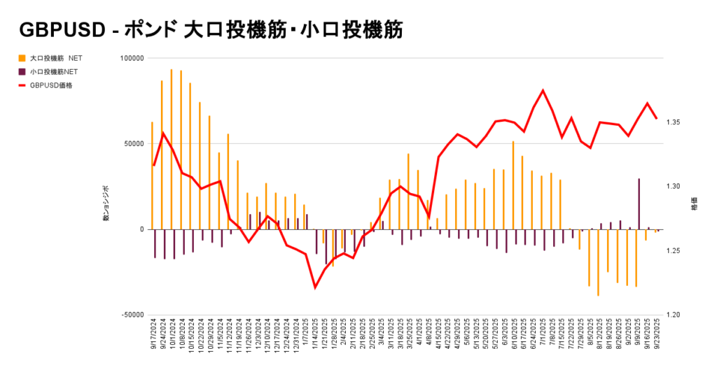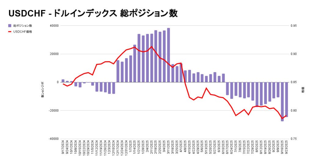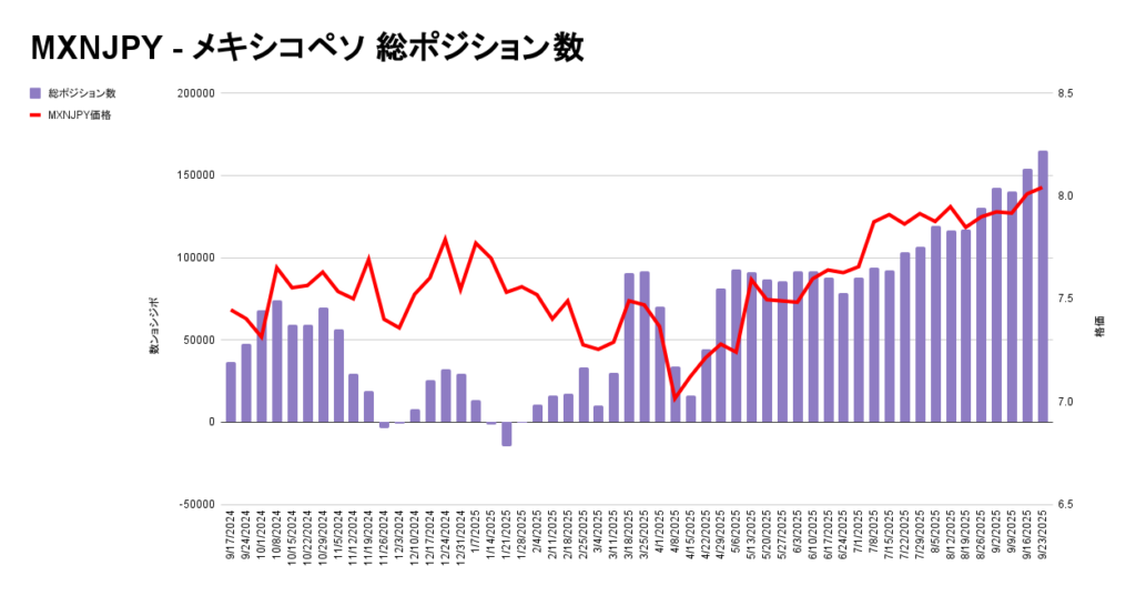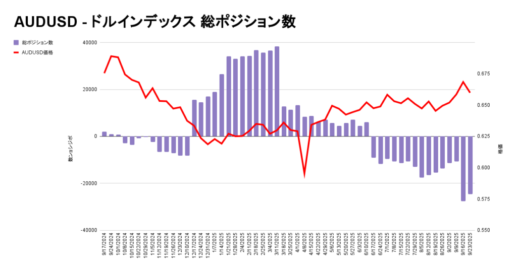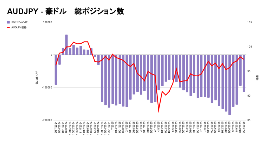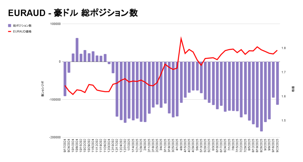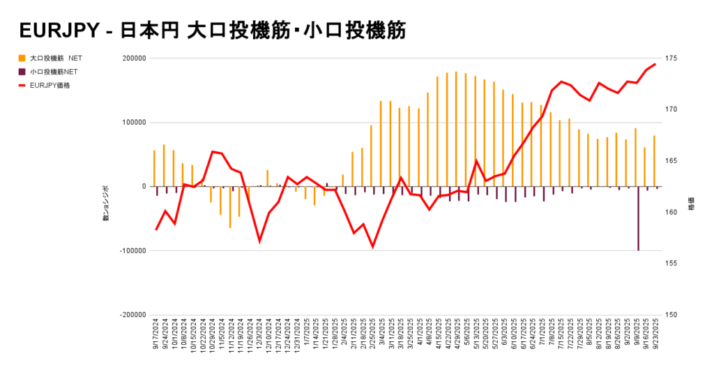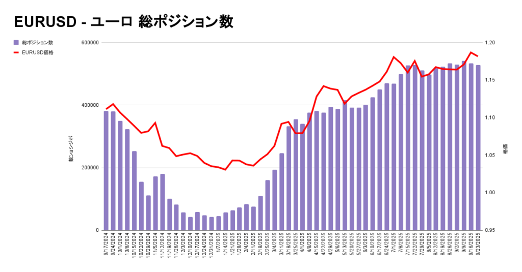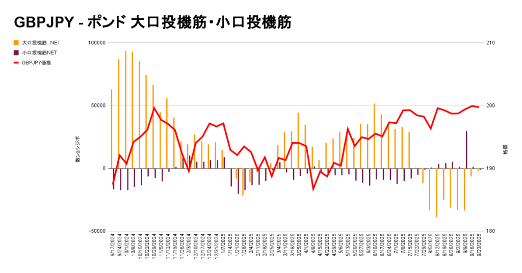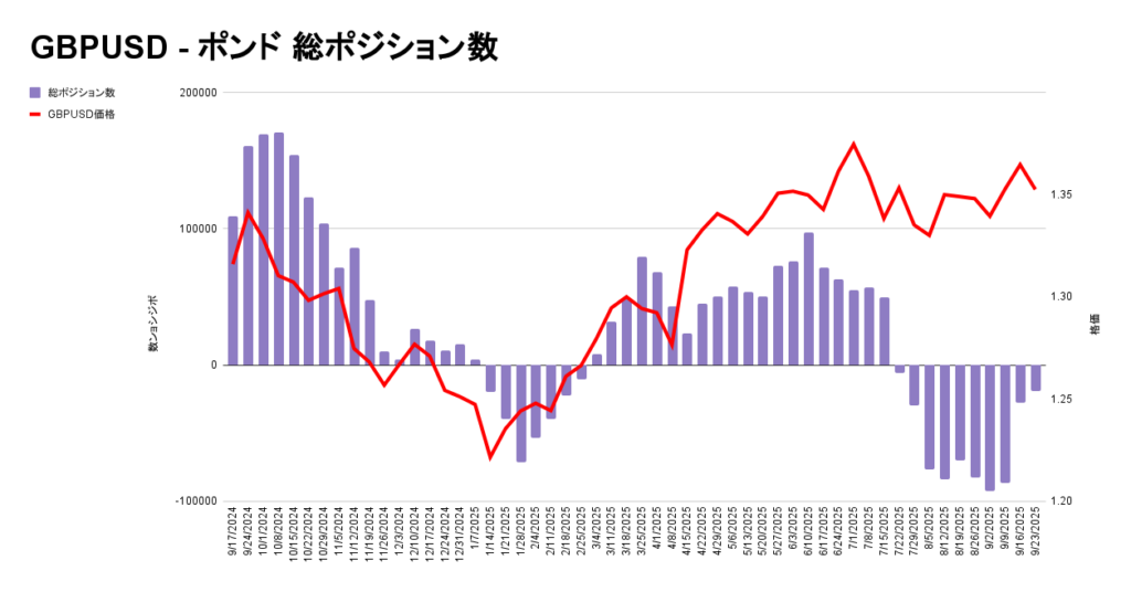 ※2025年10月現在、データ元のCFTCが米国政府閉鎖の影響を受けて最新のデータが公開されておりません。政府閉鎖が解除されてCFTCの最新データが更新され次第、投機筋チャートを更新致します。