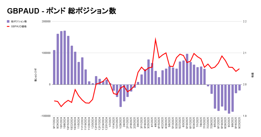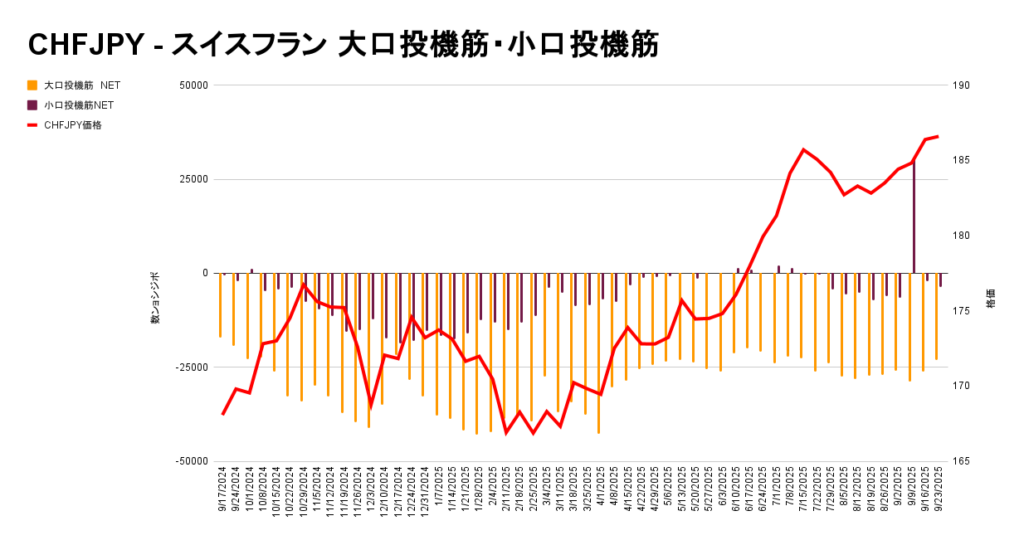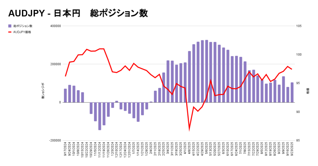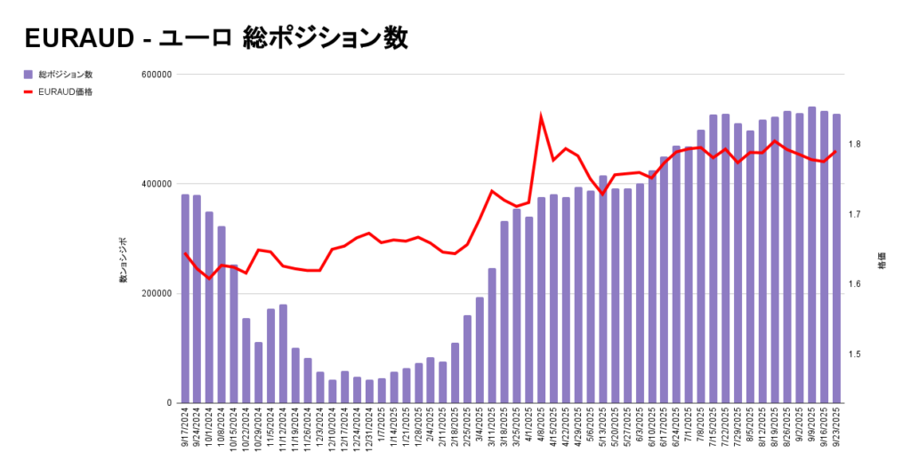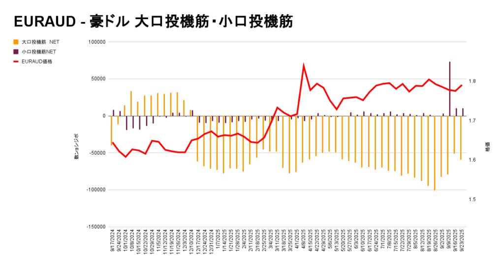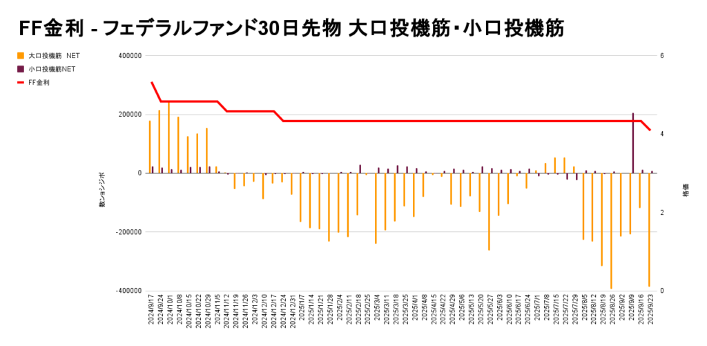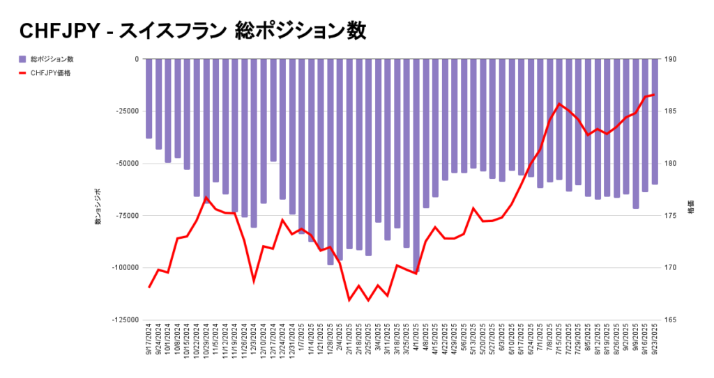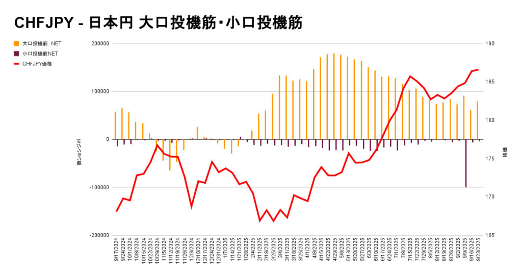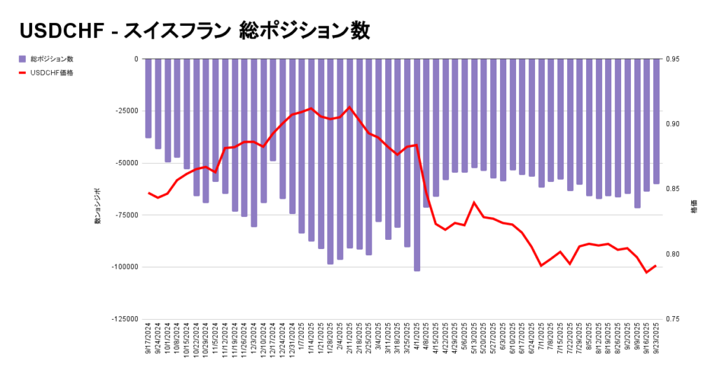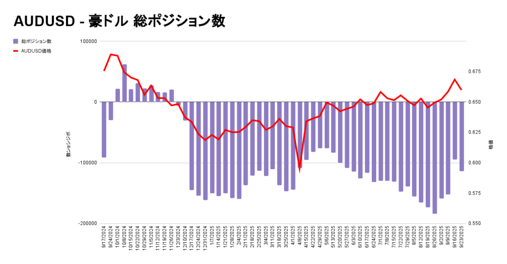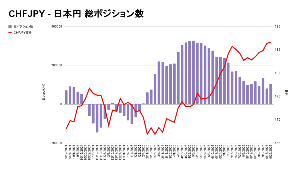 ※2025年10月現在、データ元のCFTCが米国政府閉鎖の影響を受けて最新のデータが公開されておりません。政府閉鎖が解除されてCFTCの最新データが更新され次第、投機筋チャートを更新致します。