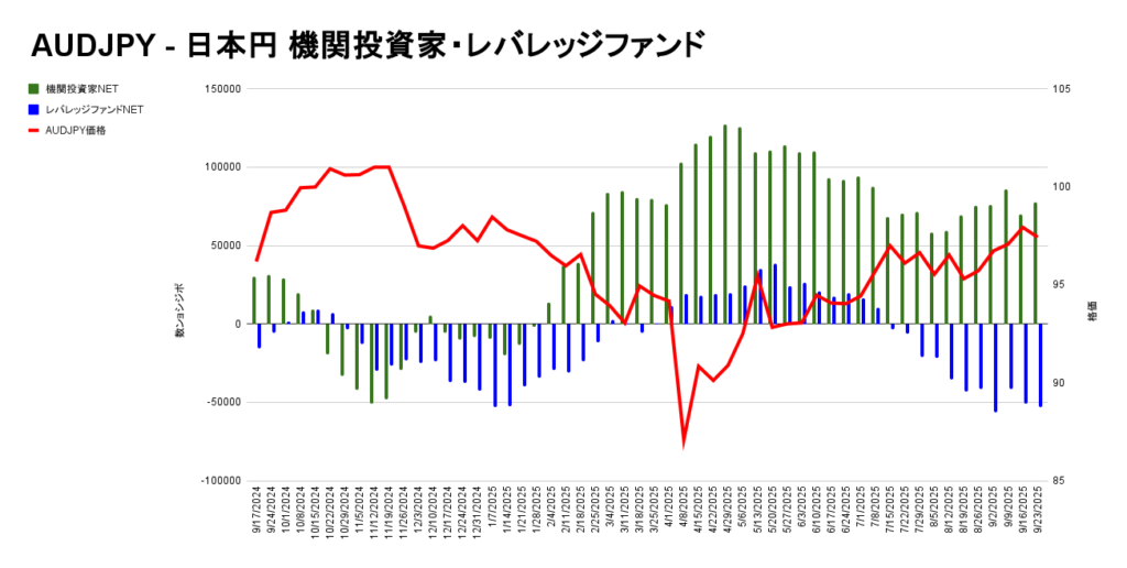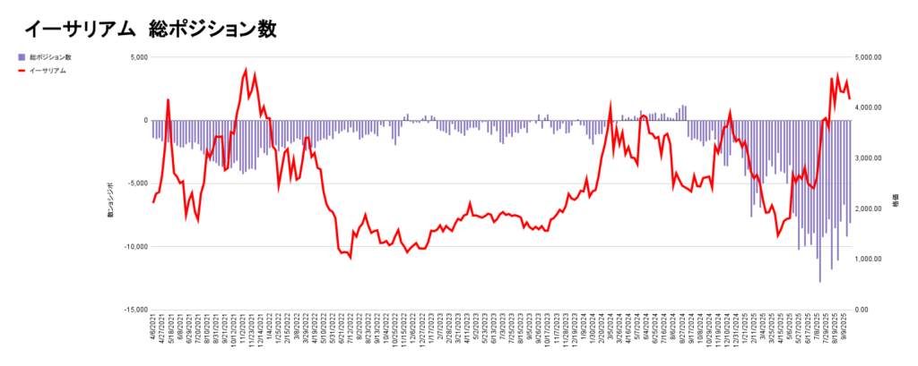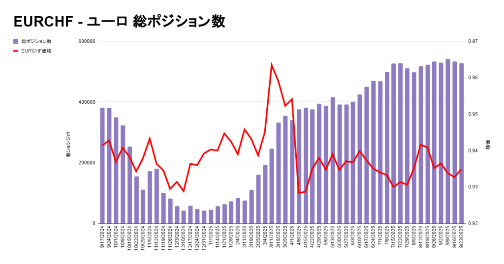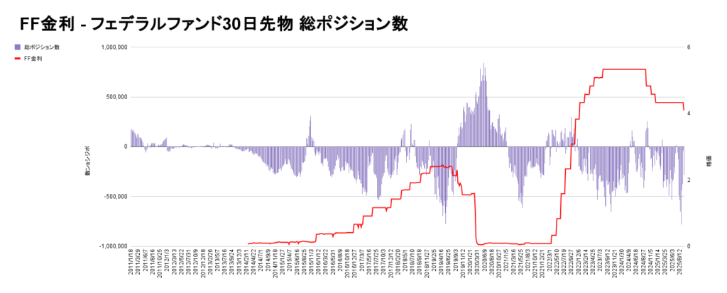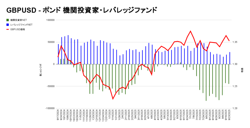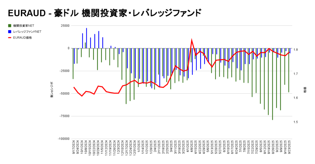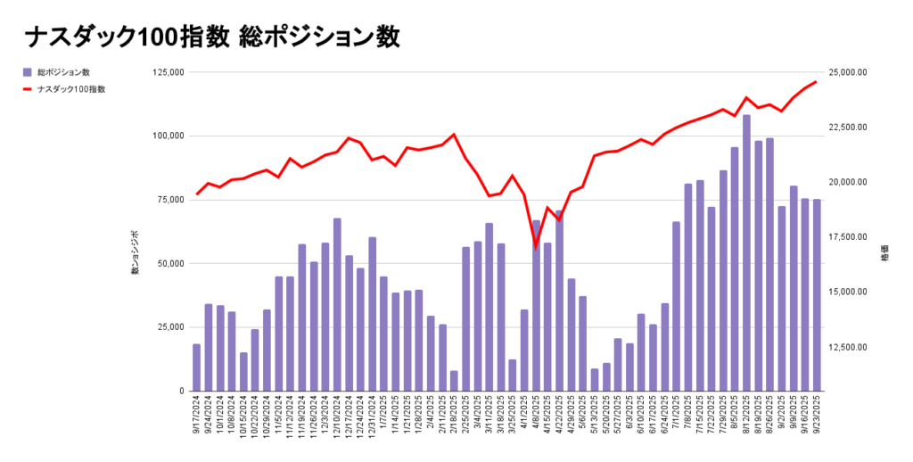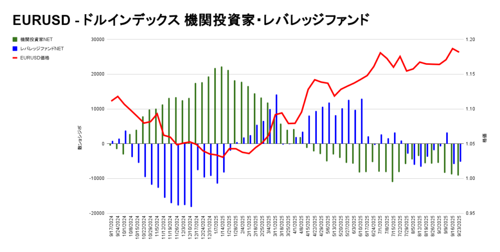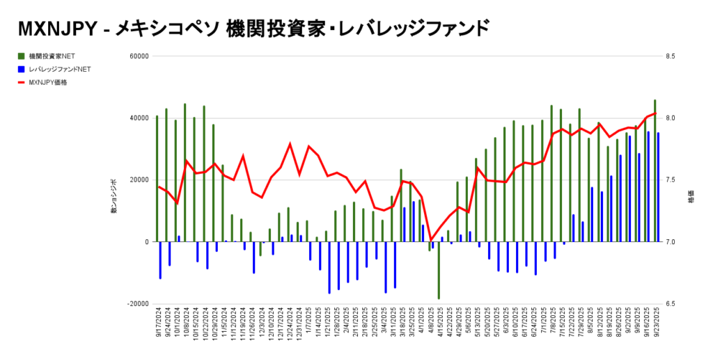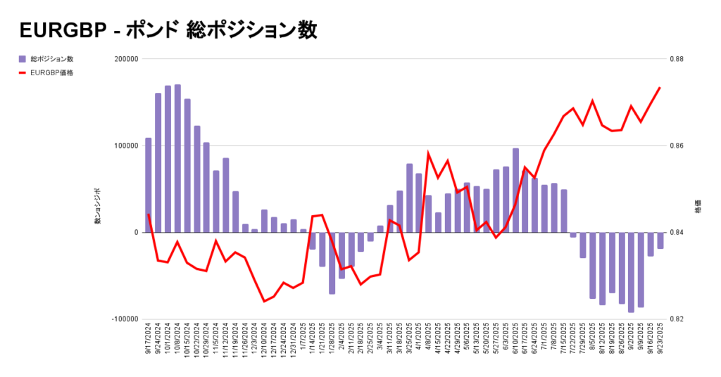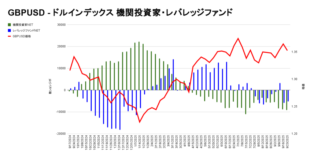 ※2025年10月現在、データ元のCFTCが米国政府閉鎖の影響を受けて最新のデータが公開されておりません。政府閉鎖が解除されてCFTCの最新データが更新され次第、投機筋チャートを更新致します。