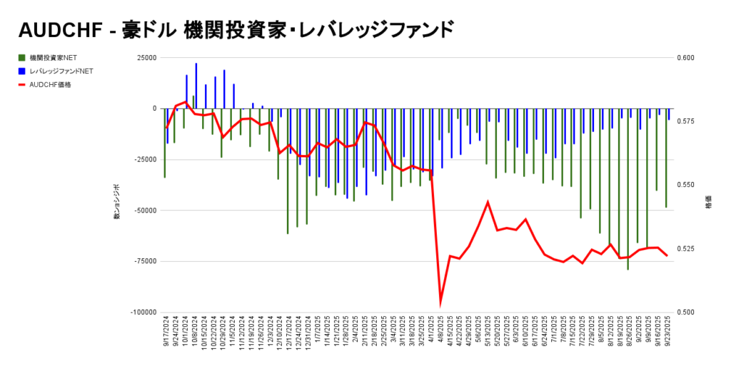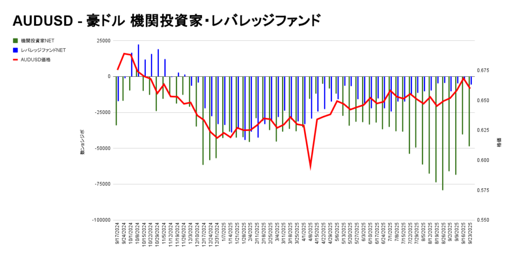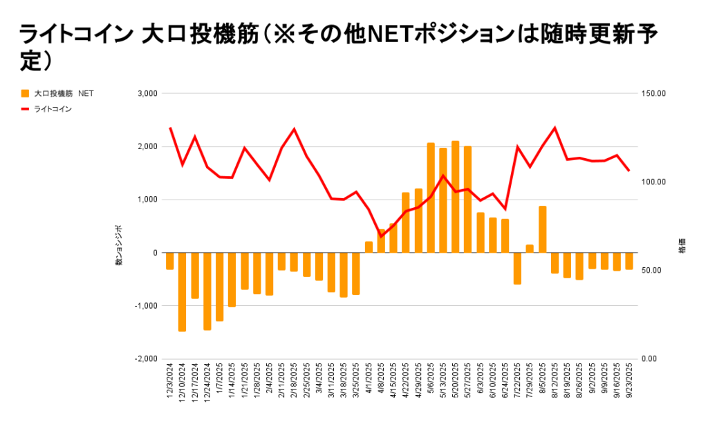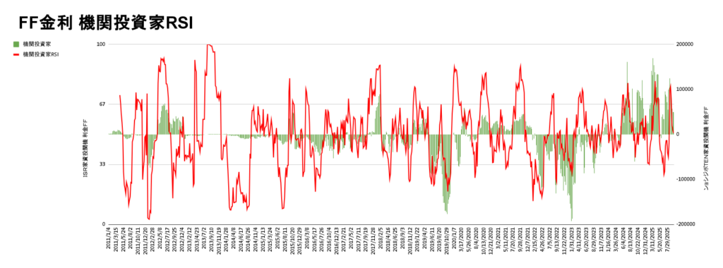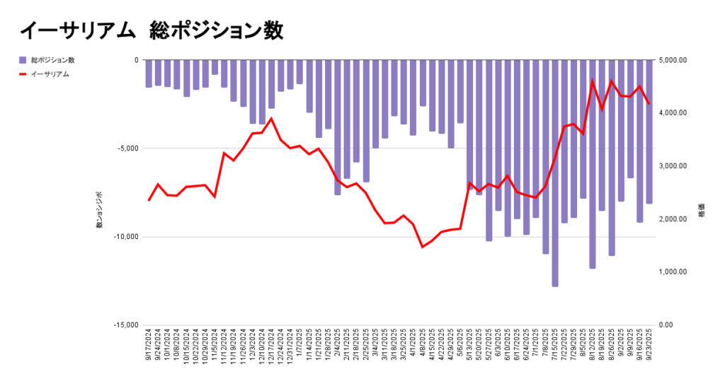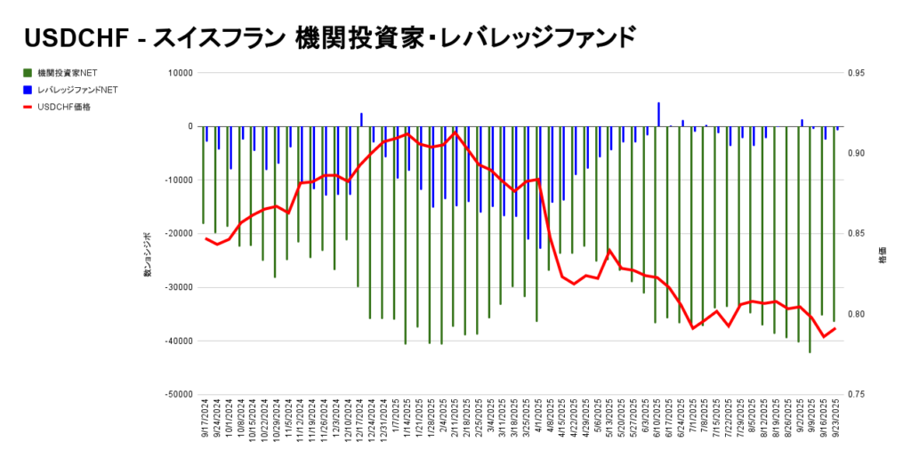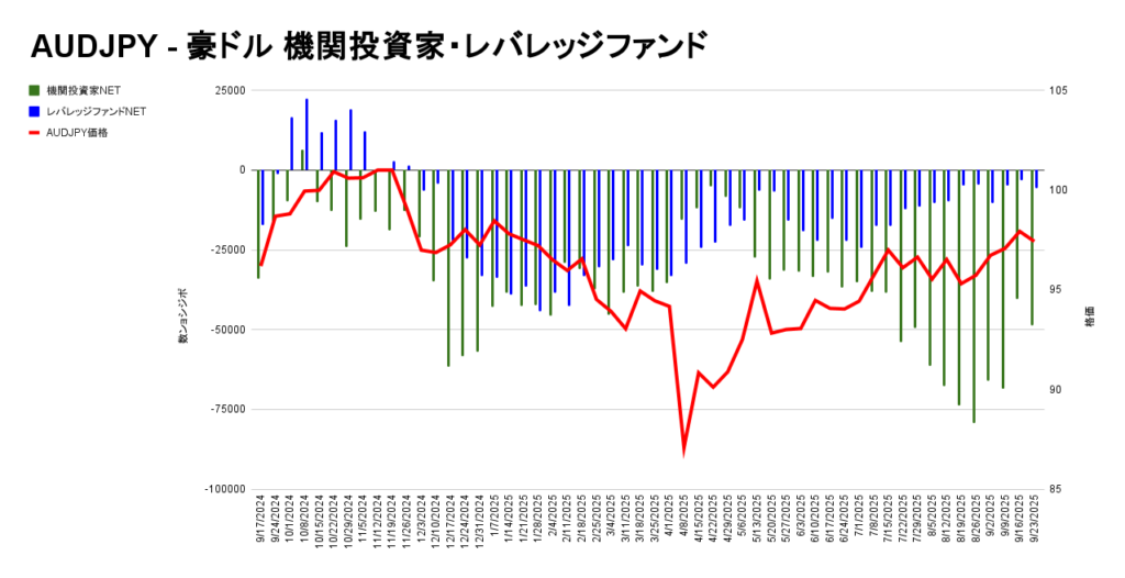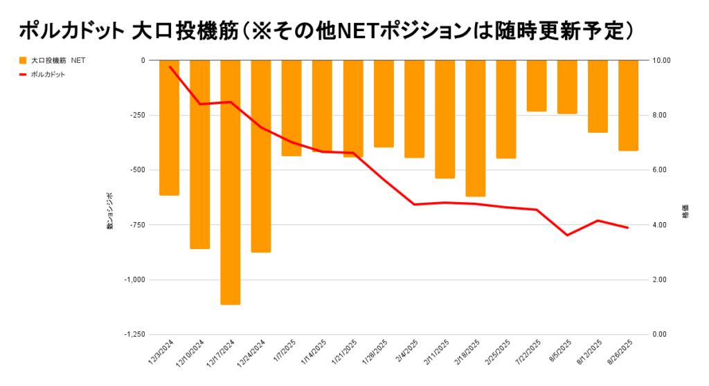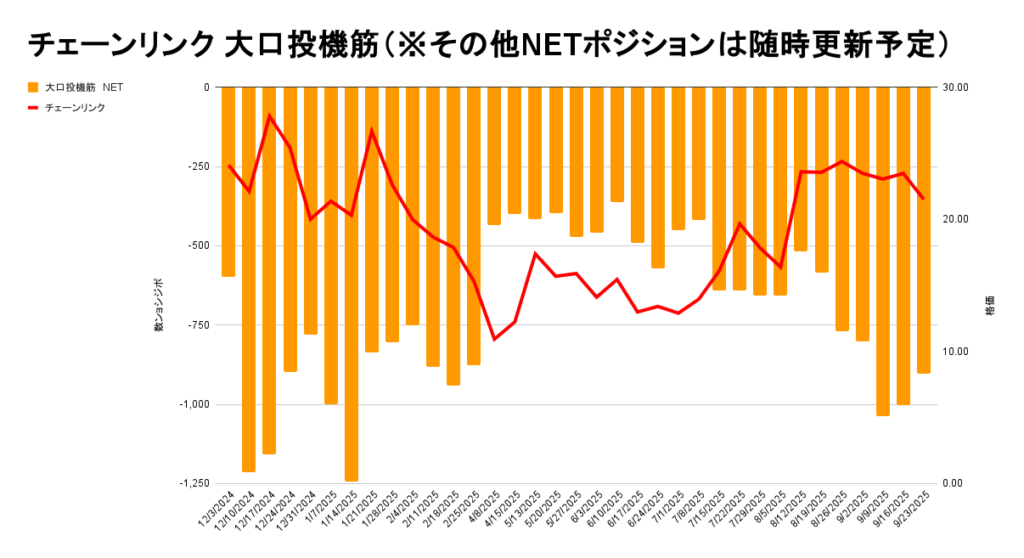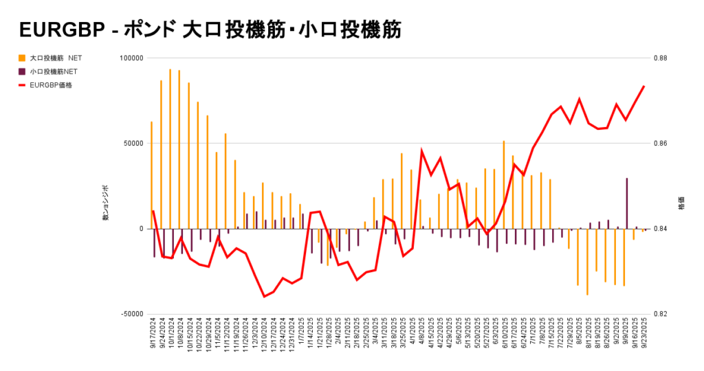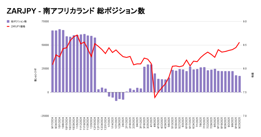 ※2025年10月現在、データ元のCFTCが米国政府閉鎖の影響を受けて最新のデータが公開されておりません。政府閉鎖が解除されてCFTCの最新データが更新され次第、投機筋チャートを更新致します。