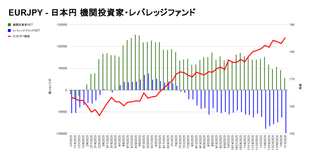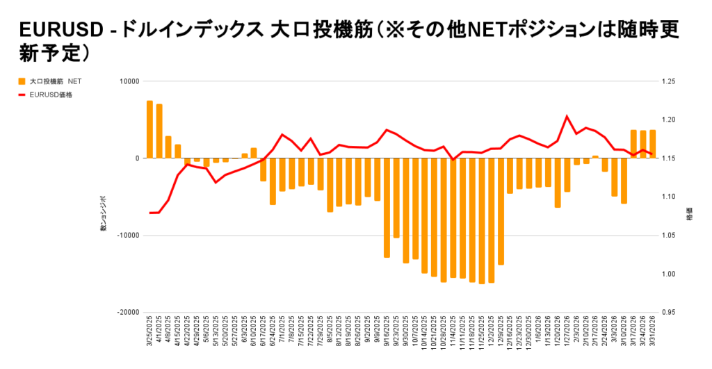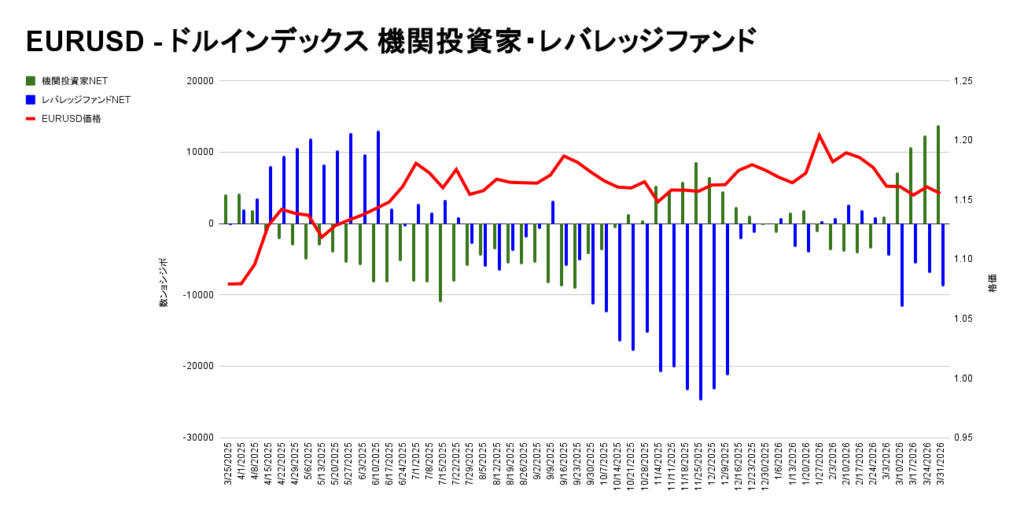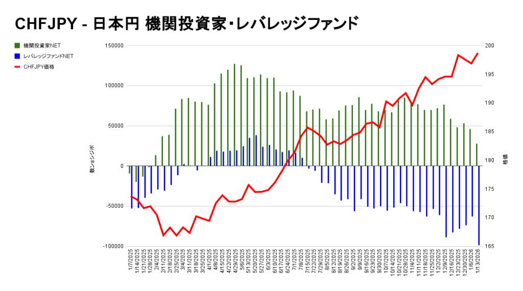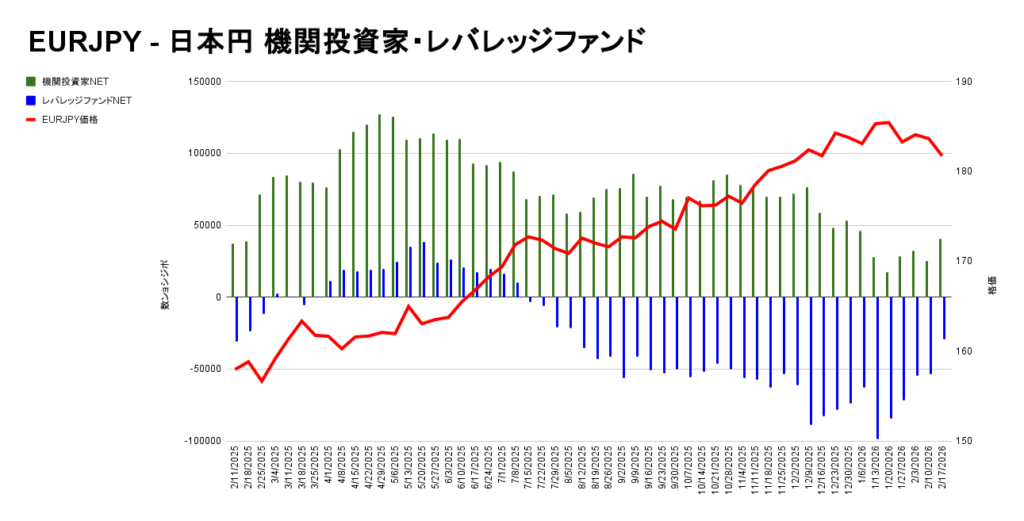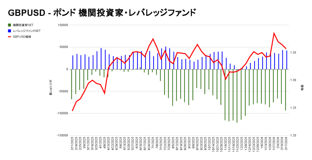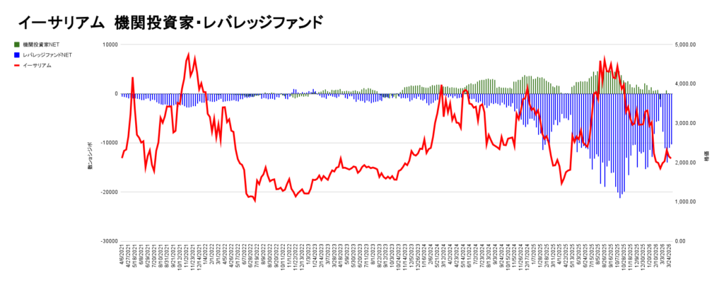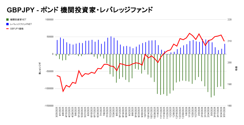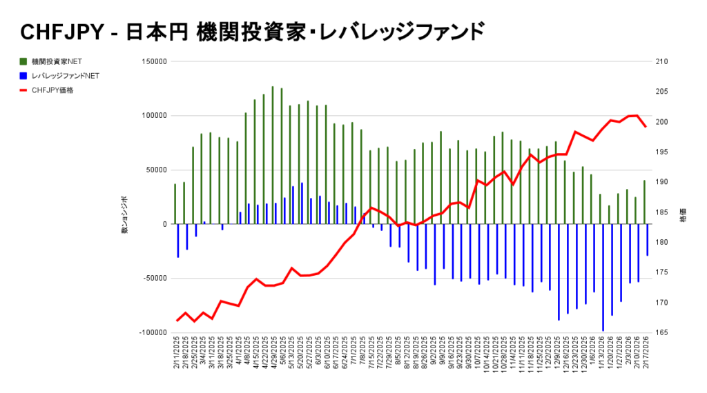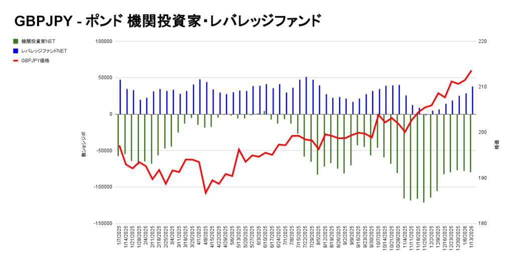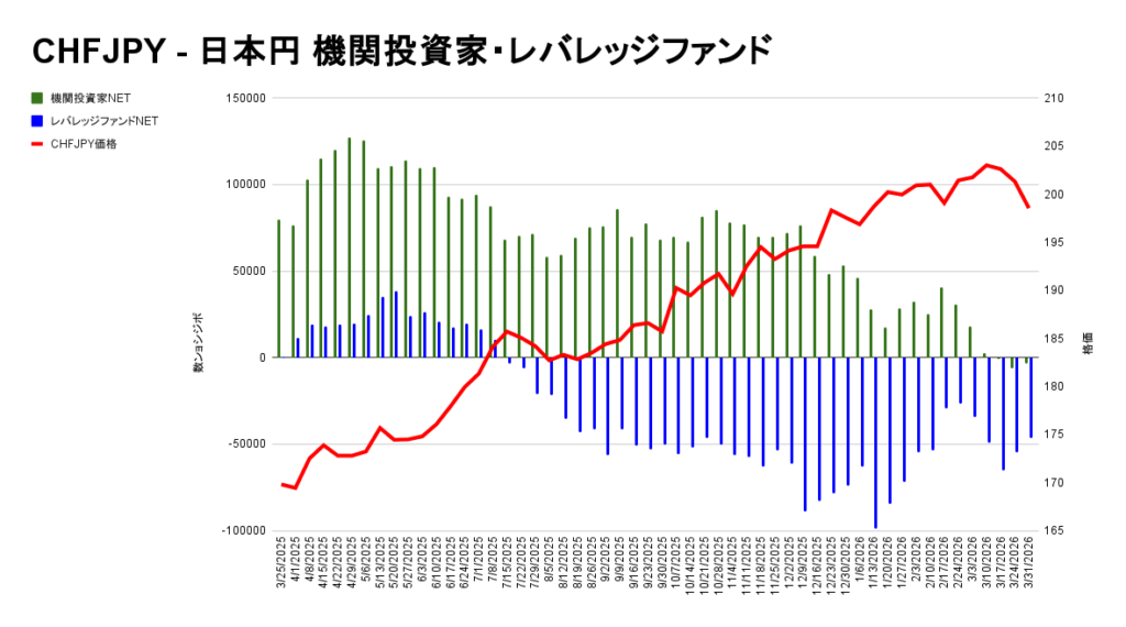 投機筋チャートとは大口投機筋・機関投資家・レバレッジファンドの「相場を操る御三家」のポジション量をまとめたチャートになります。