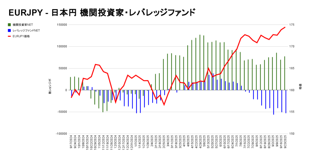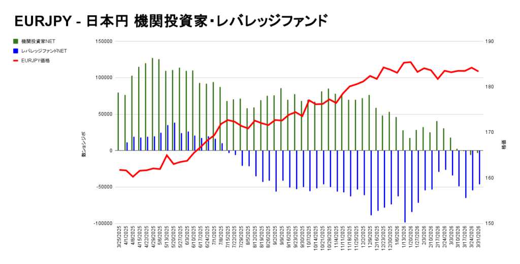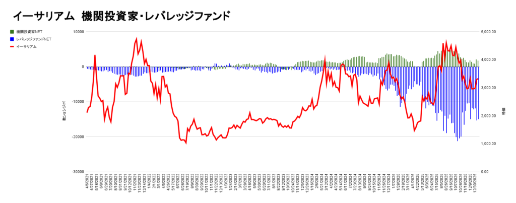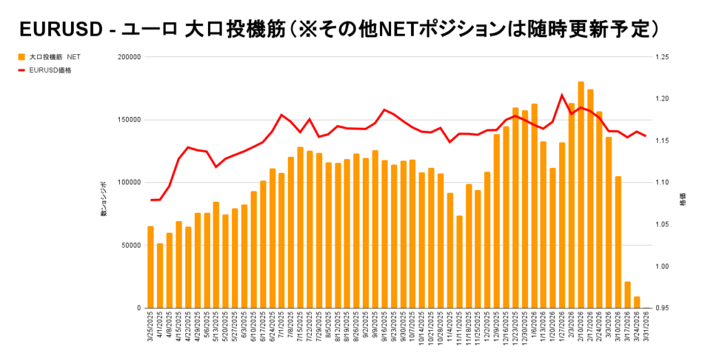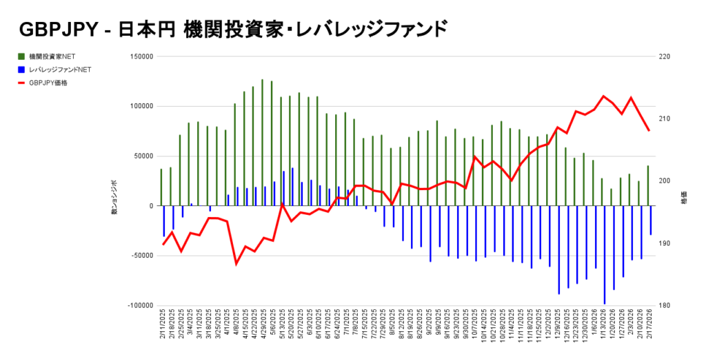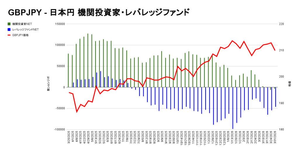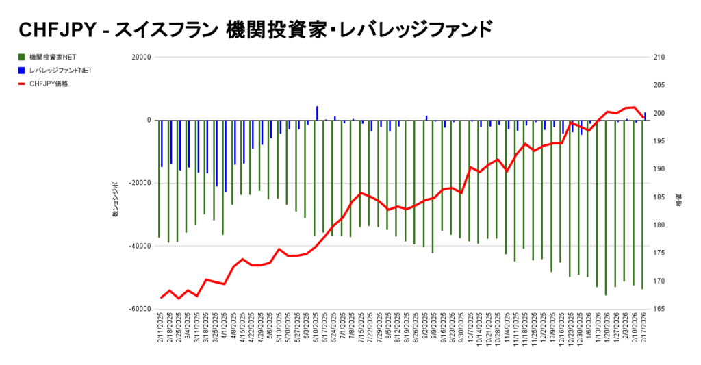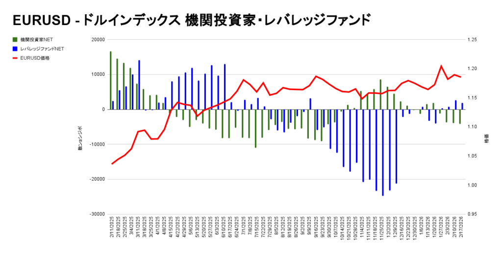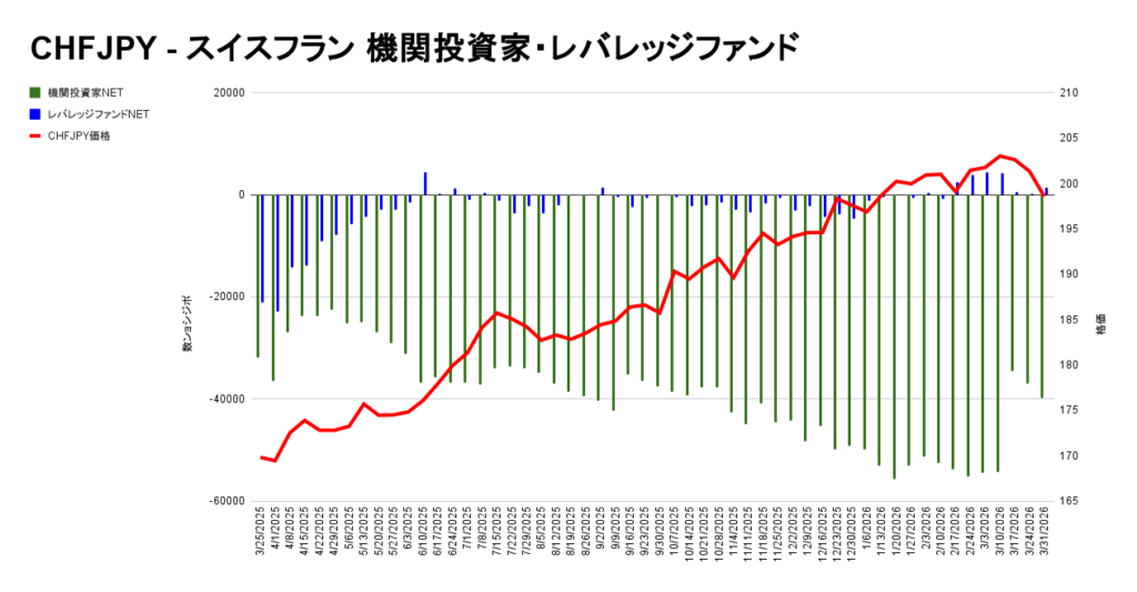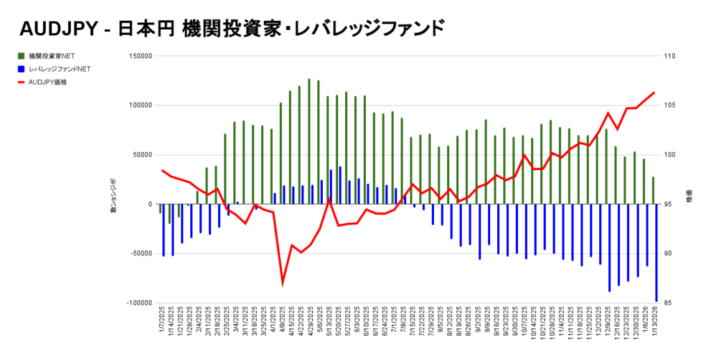 投機筋チャートとは大口投機筋・機関投資家・レバレッジファンドの「相場を操る御三家」のポジション量をまとめたチャートになります。