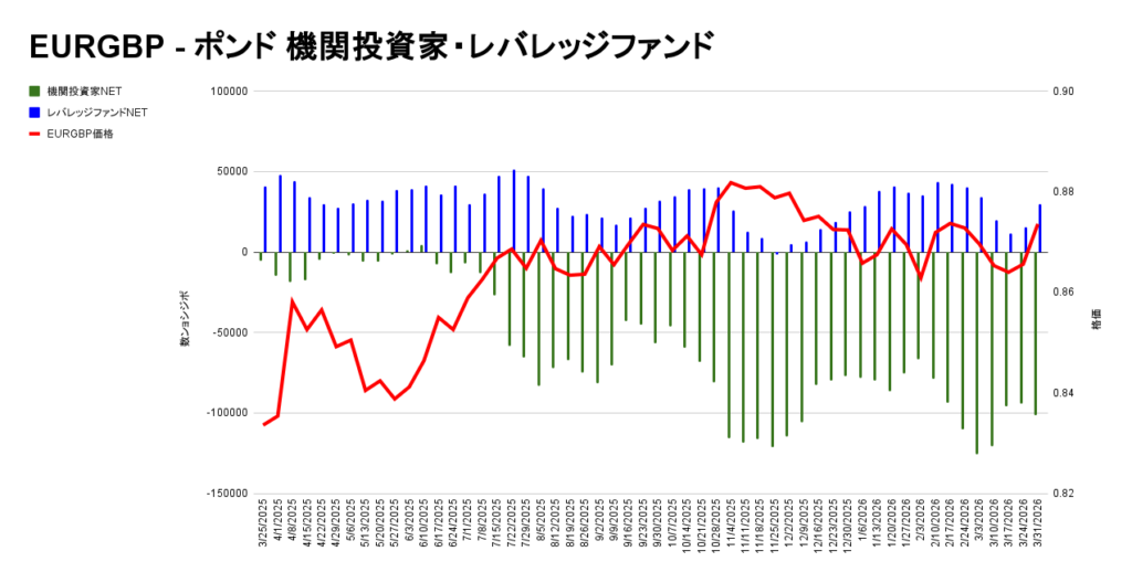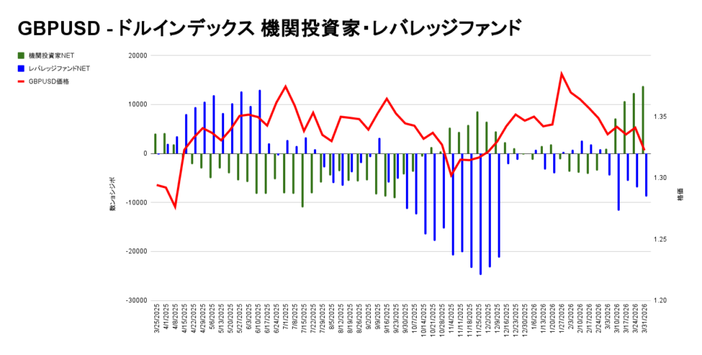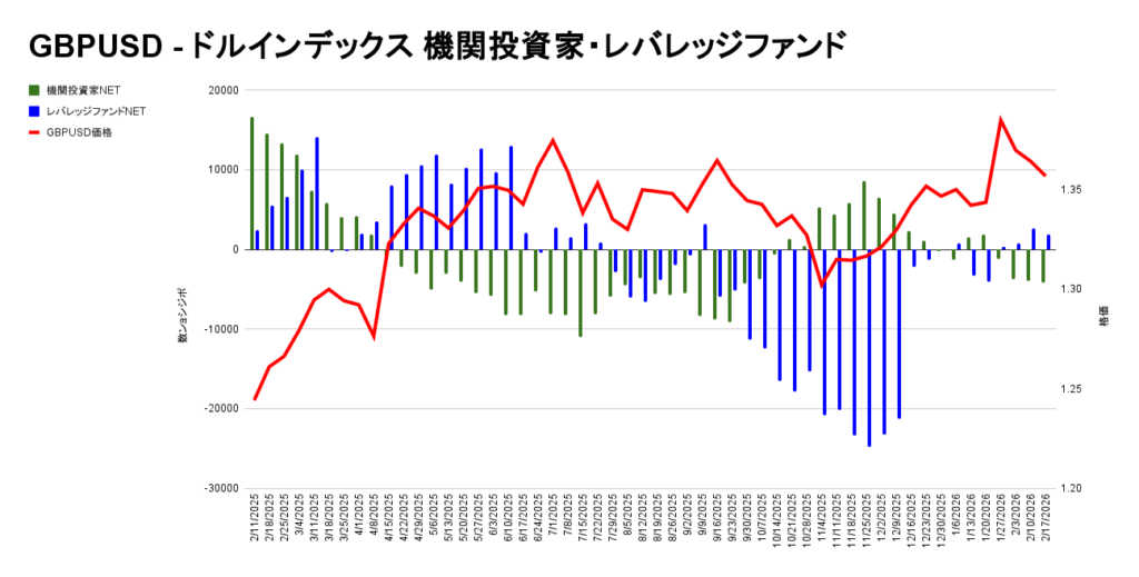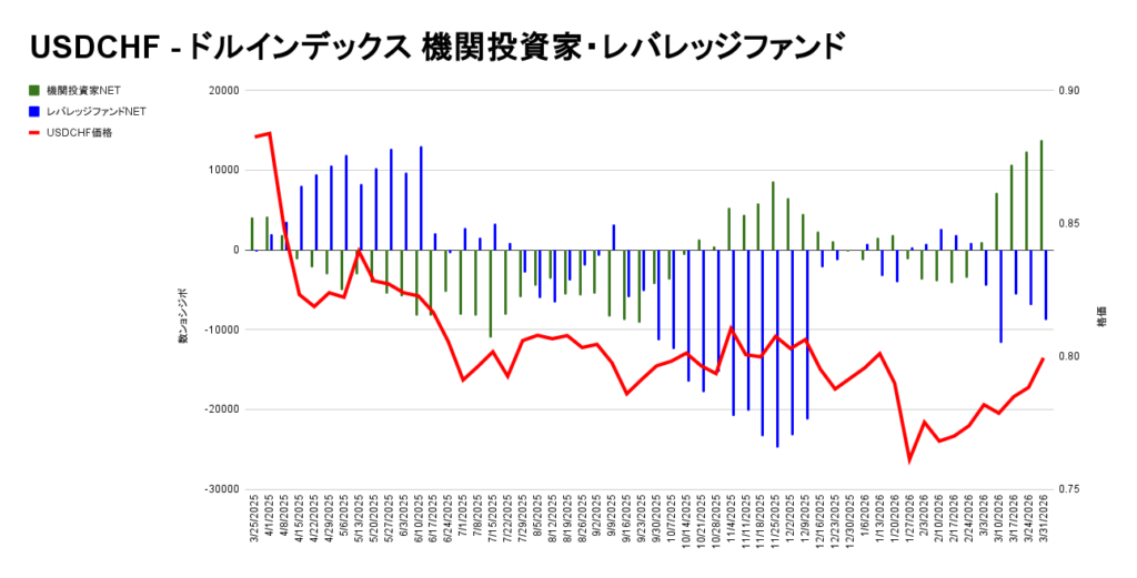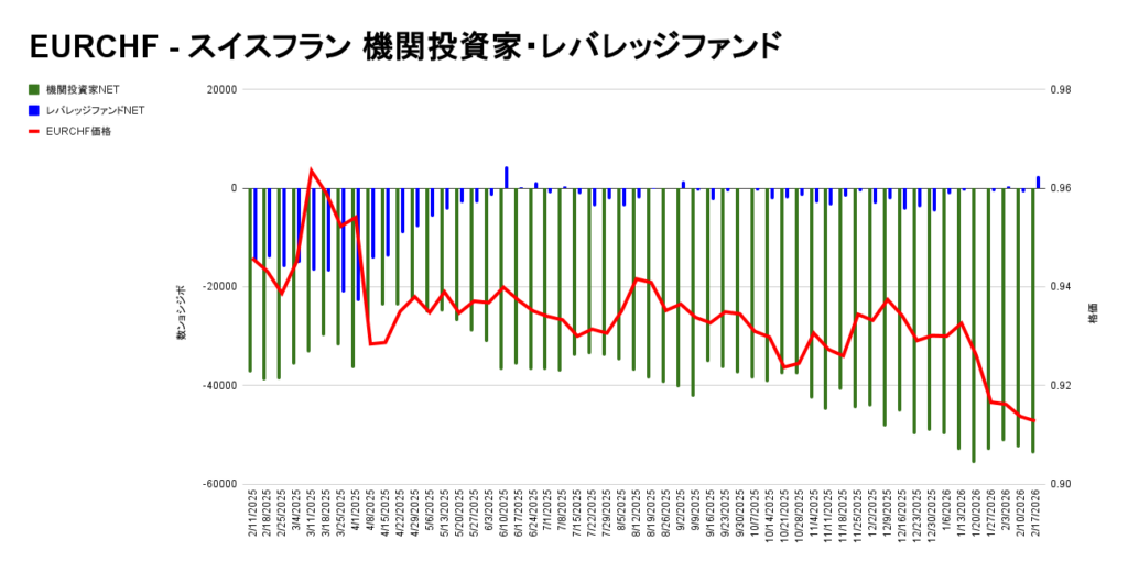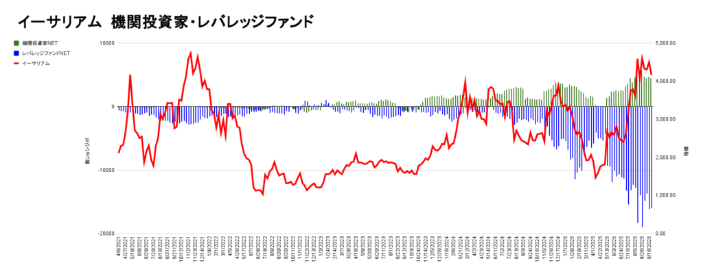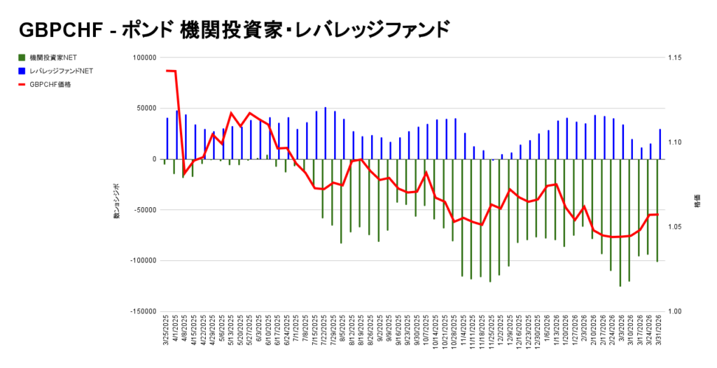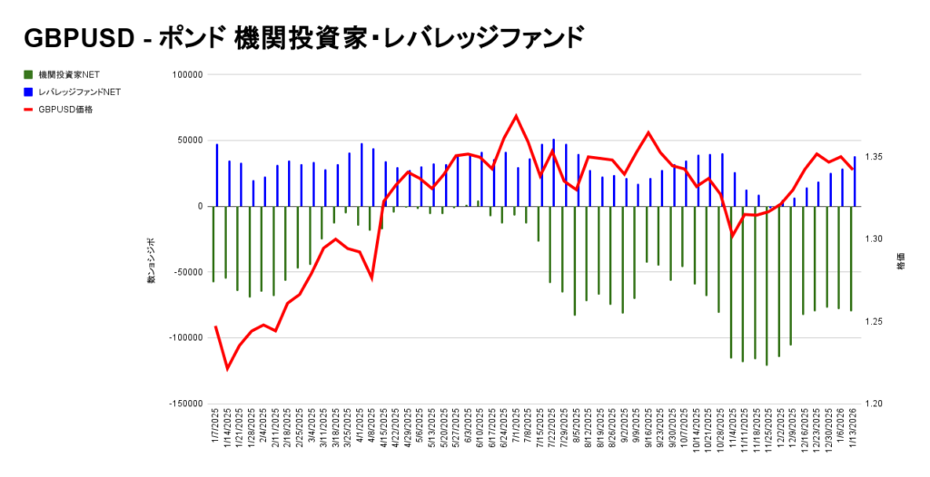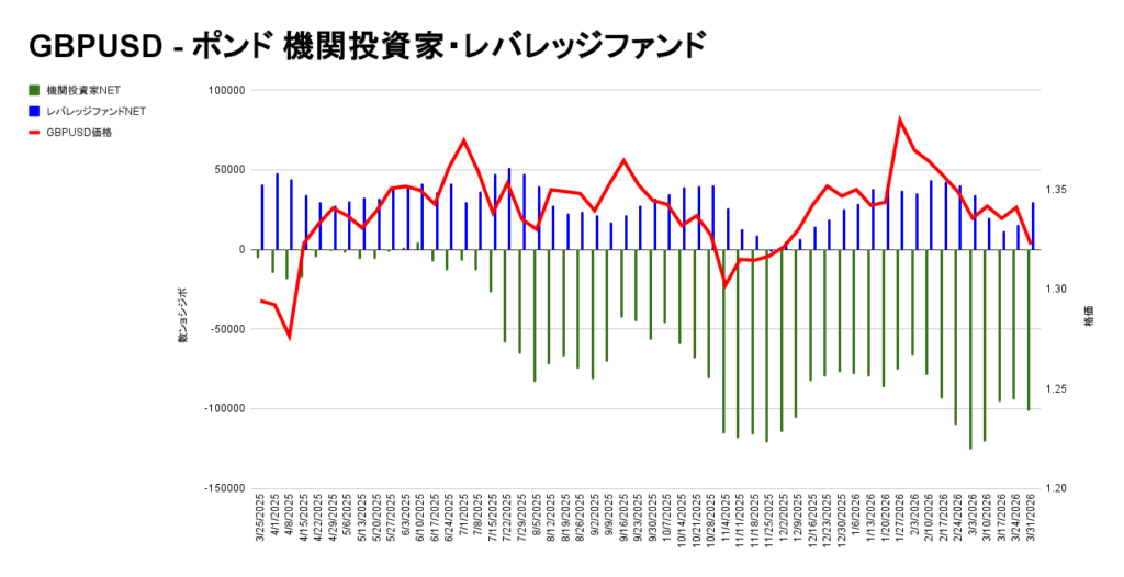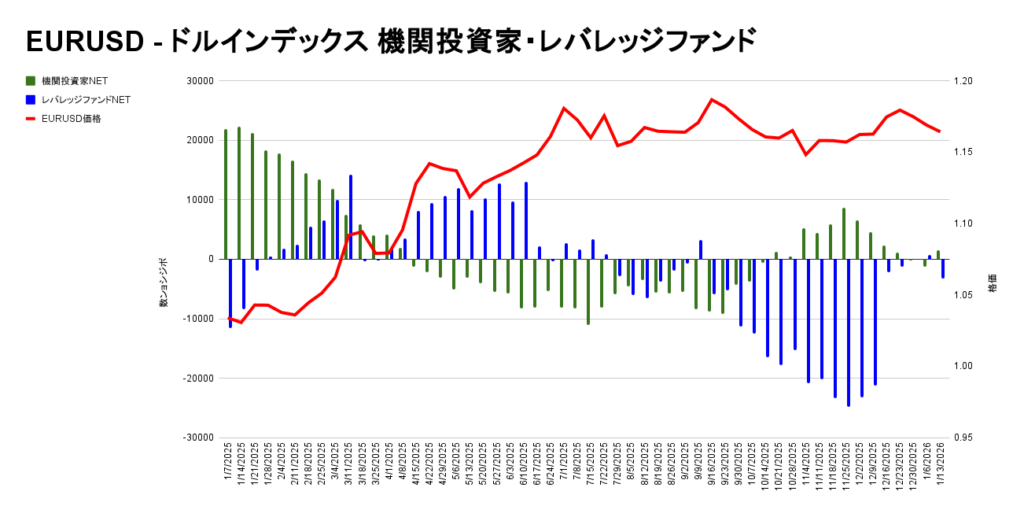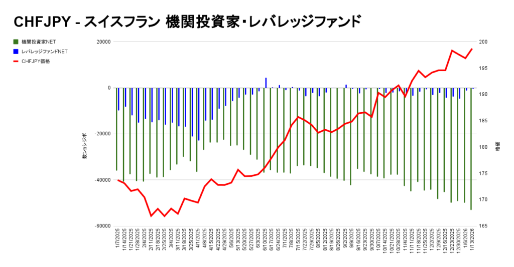 投機筋チャートとは大口投機筋・機関投資家・レバレッジファンドの「相場を操る御三家」のポジション量をまとめたチャートになります。