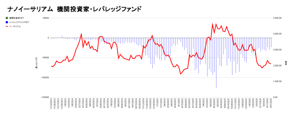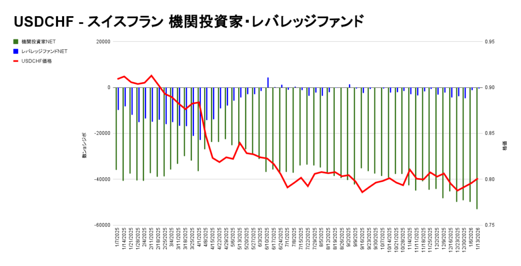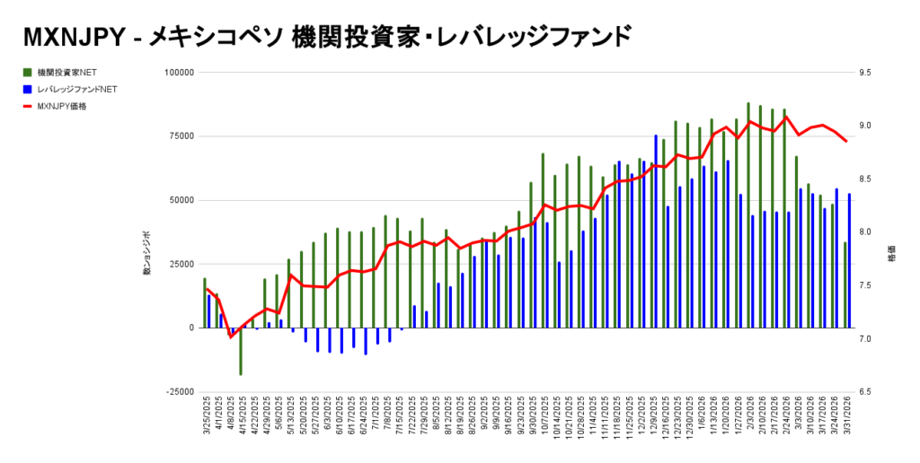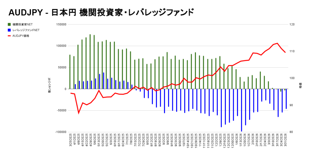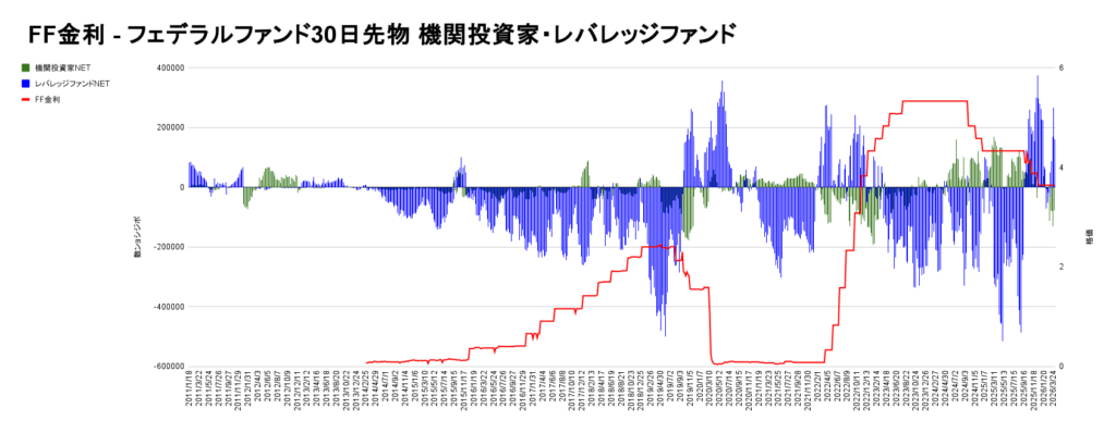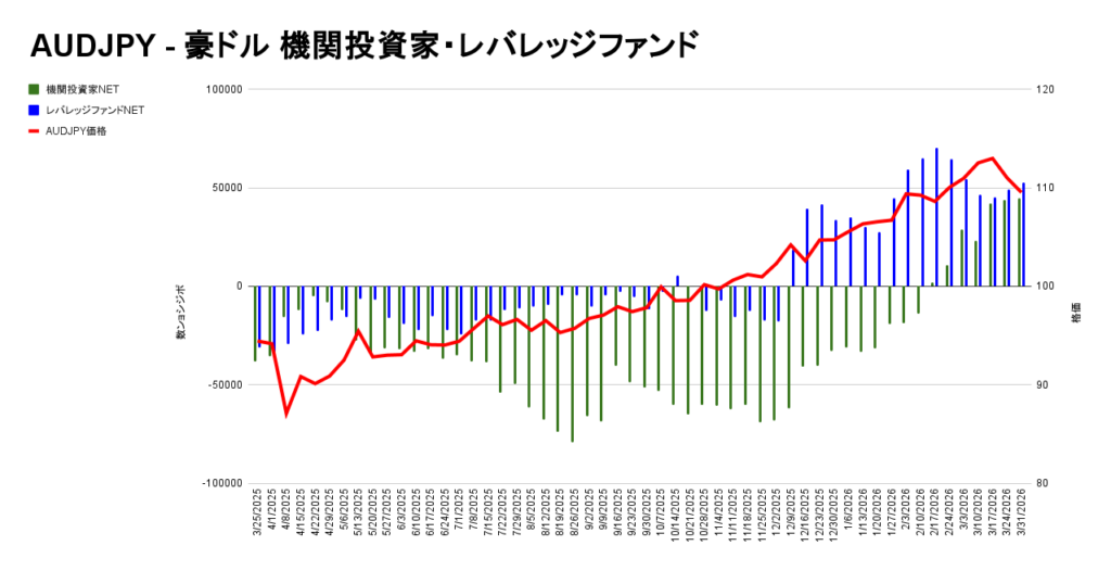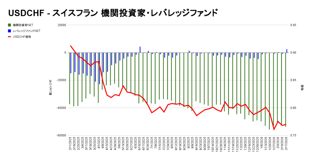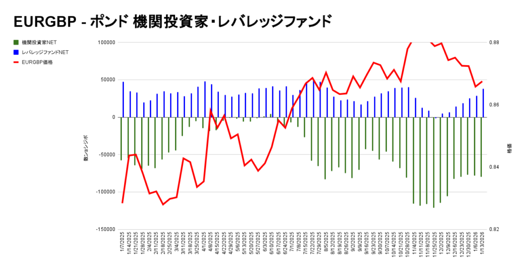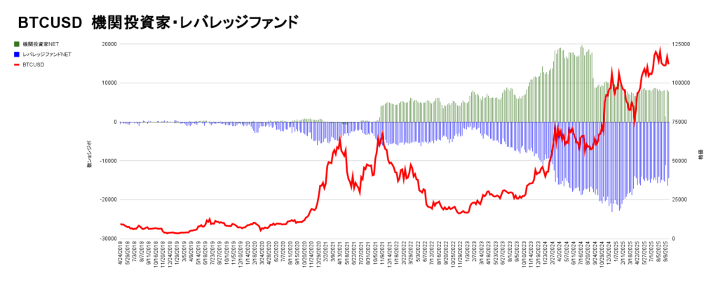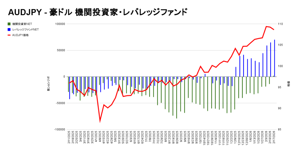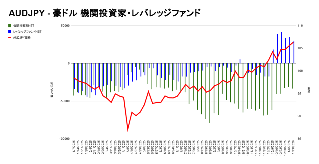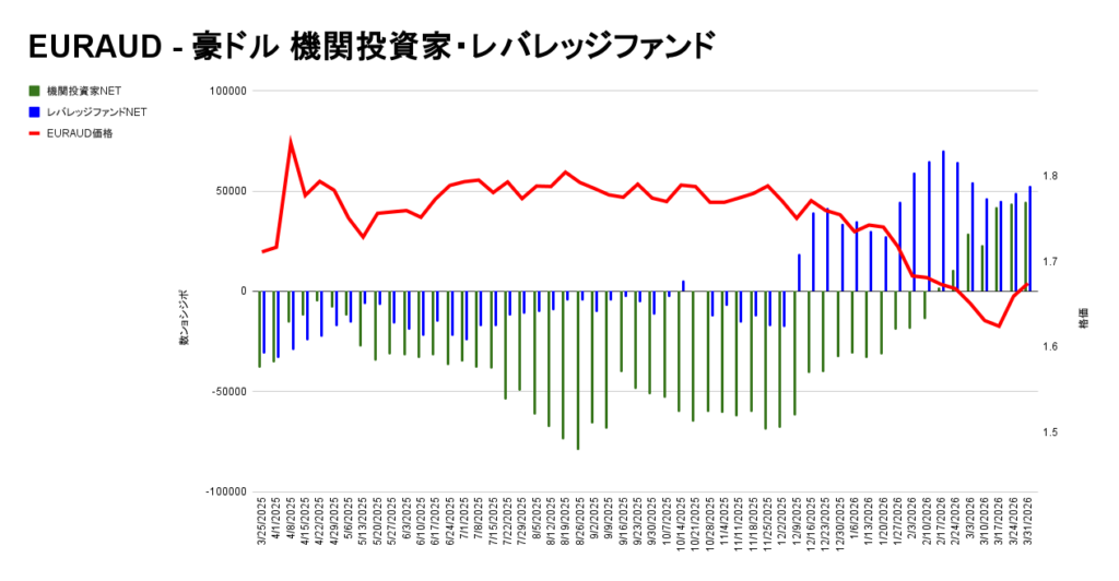 投機筋チャートとは大口投機筋・機関投資家・レバレッジファンドの「相場を操る御三家」のポジション量をまとめたチャートになります。