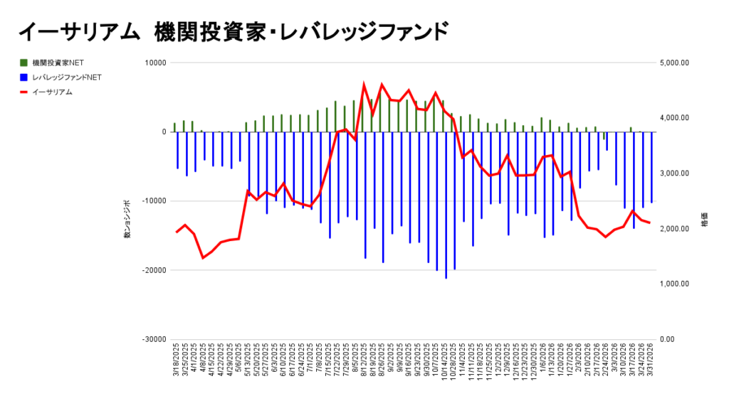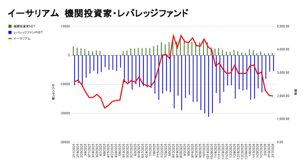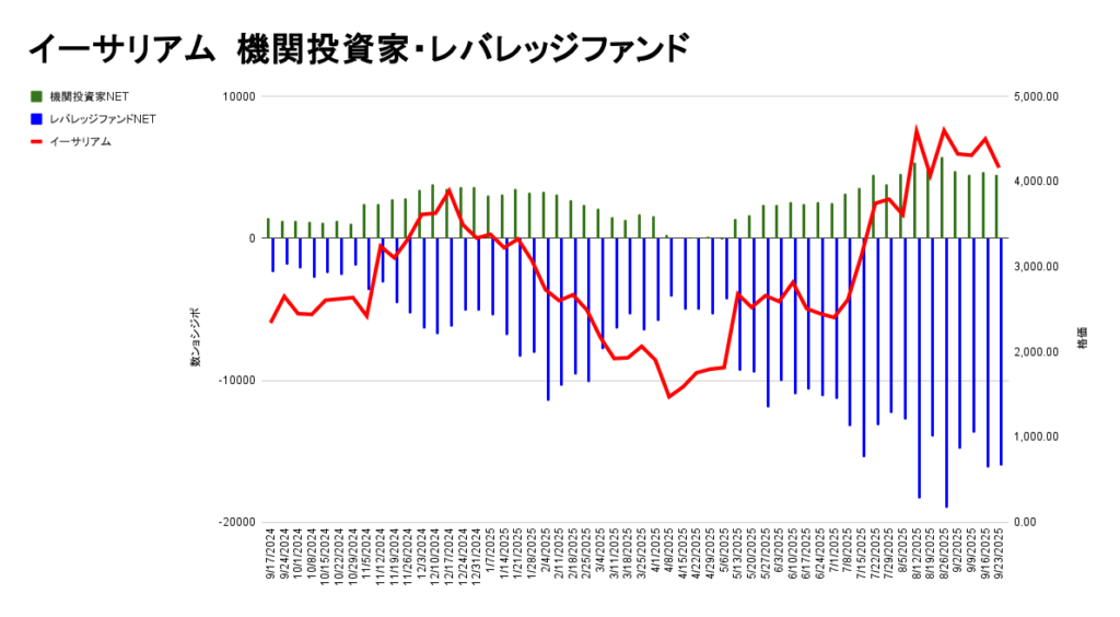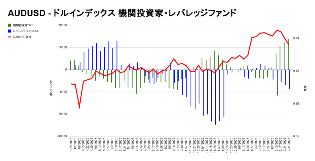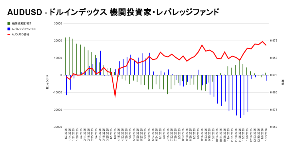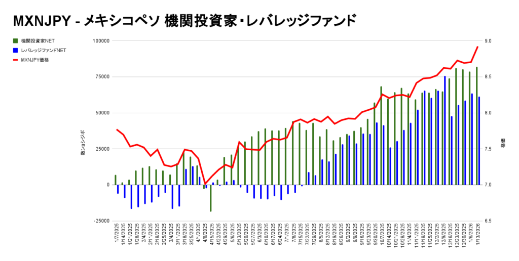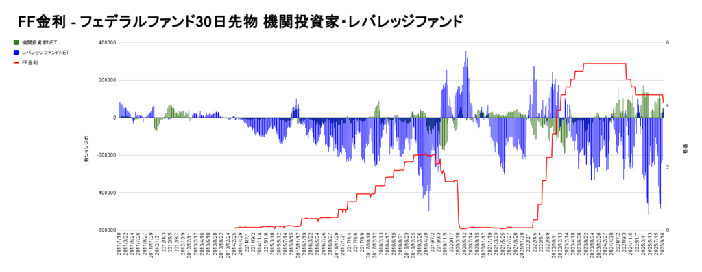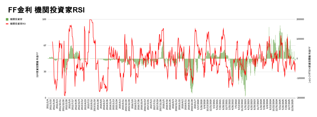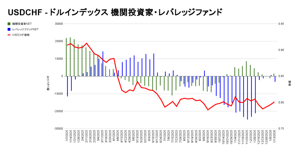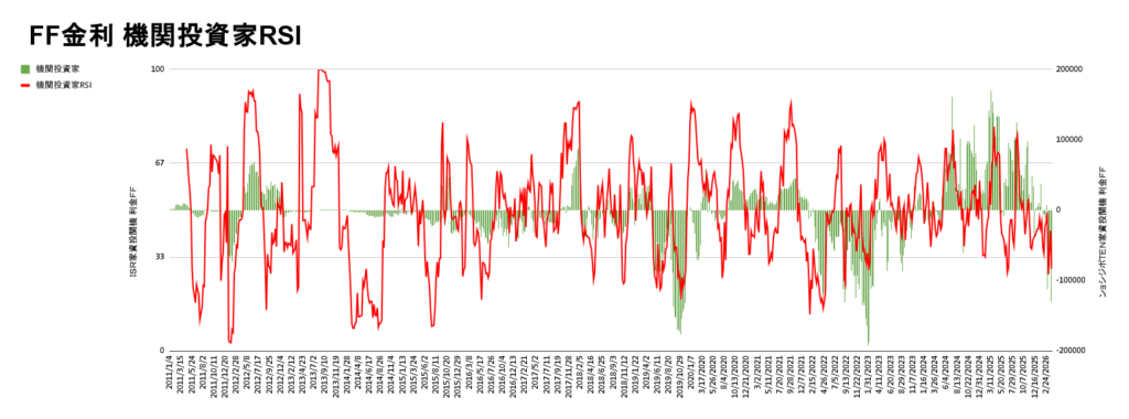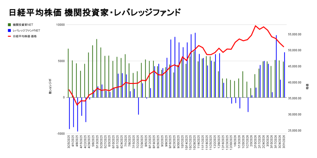 投機筋チャートとは大口投機筋・機関投資家・レバレッジファンドの「相場を操る御三家」のポジション量をまとめたチャートになります。