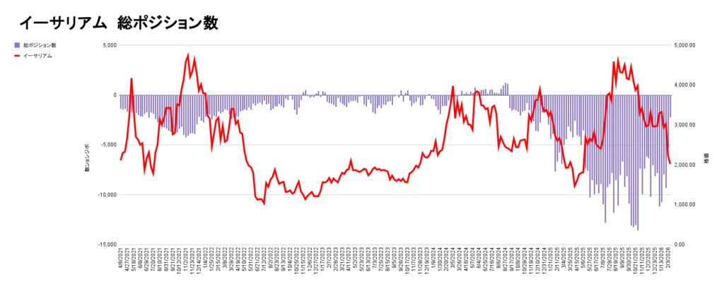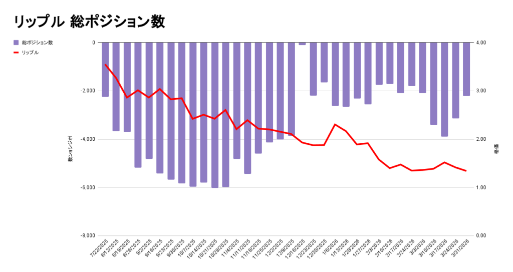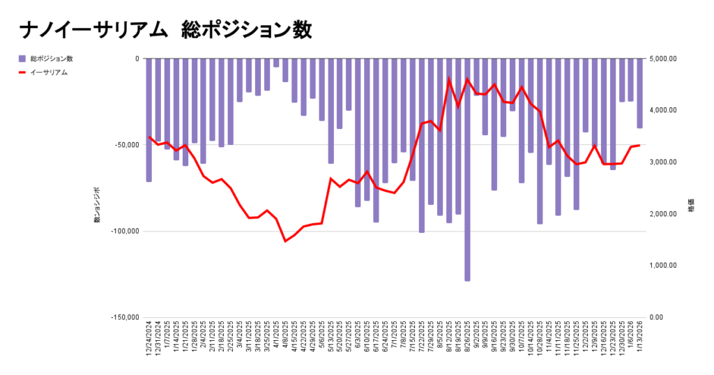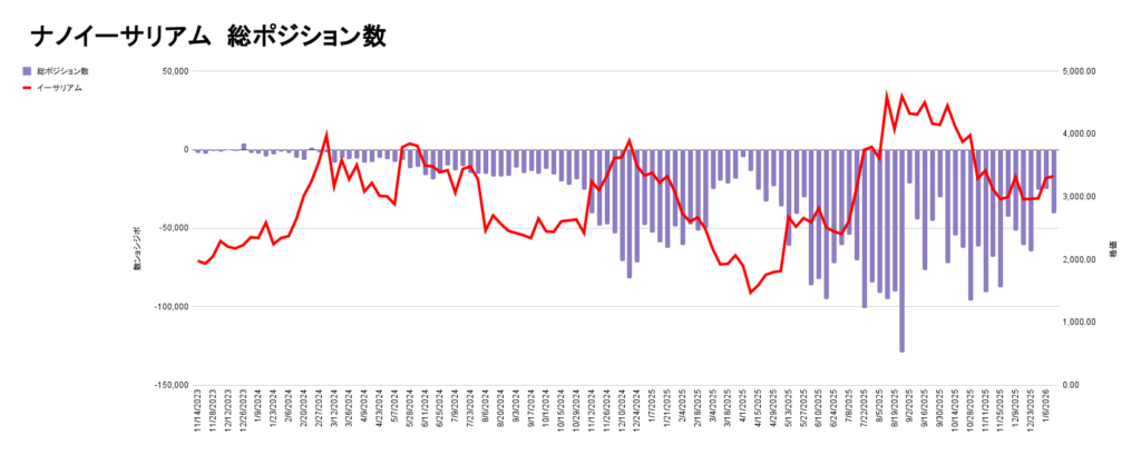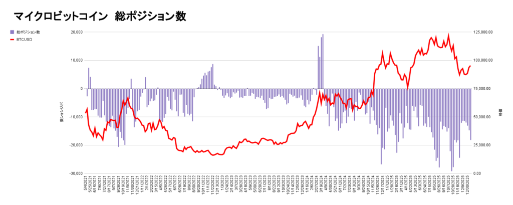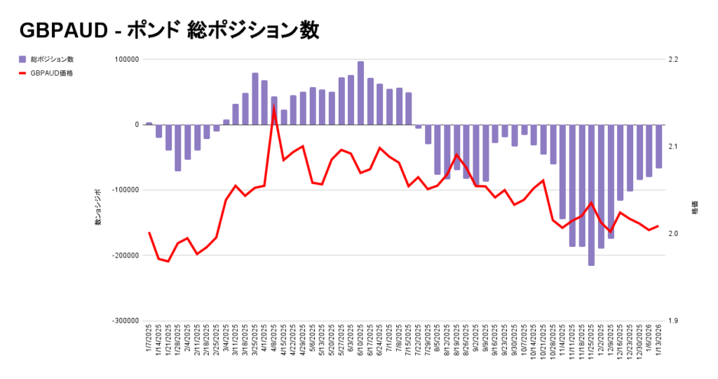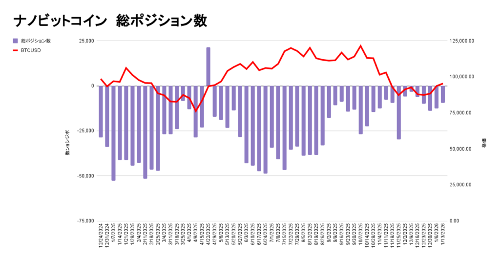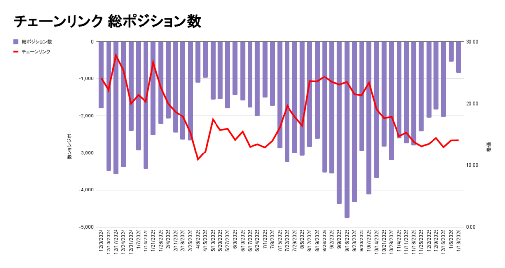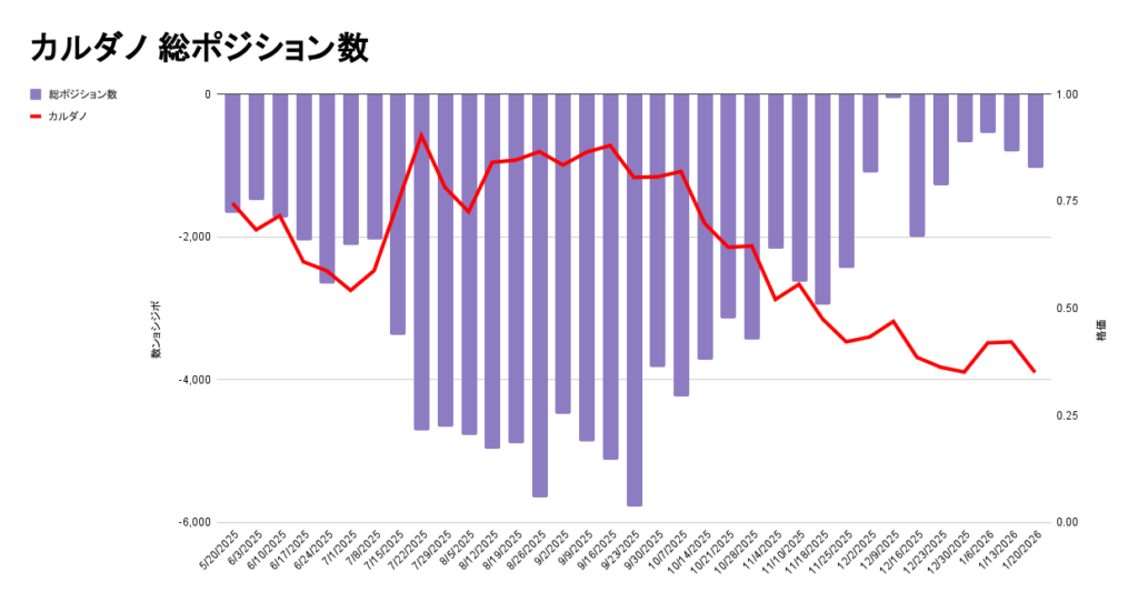 逆に0より下、つまりマイナスの値を取ると売りポジション量が多いということになります。