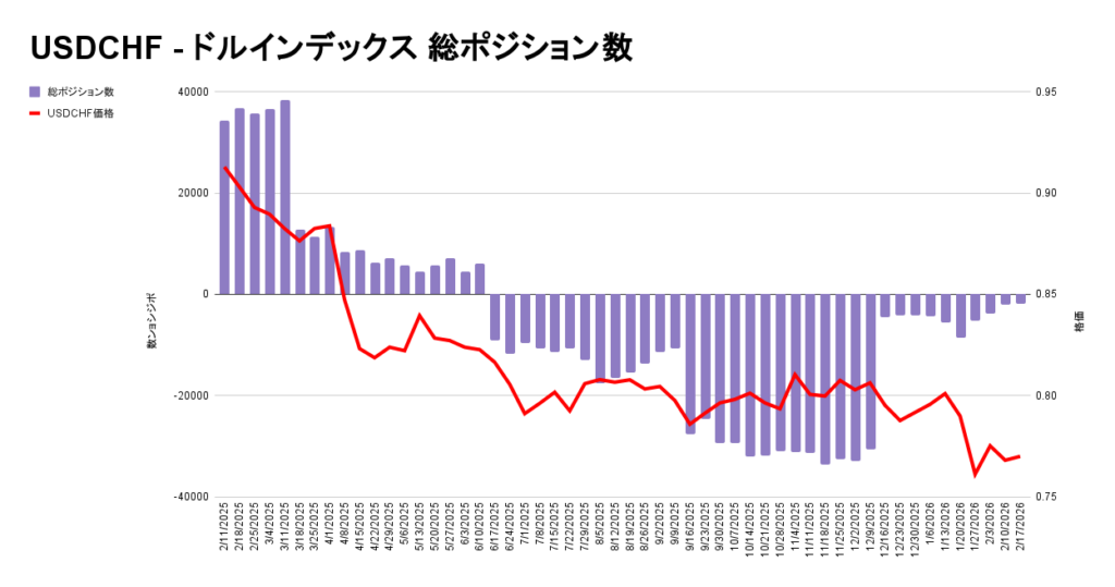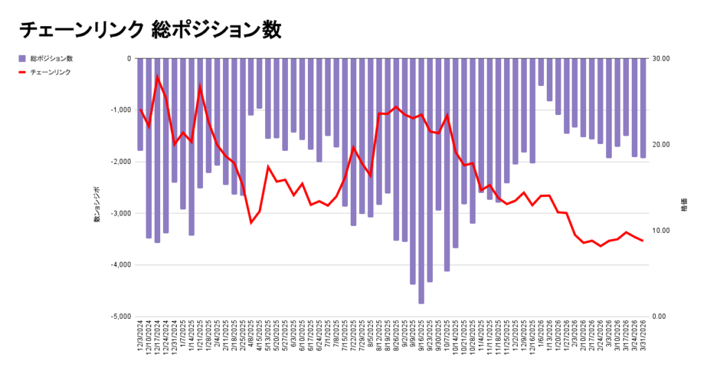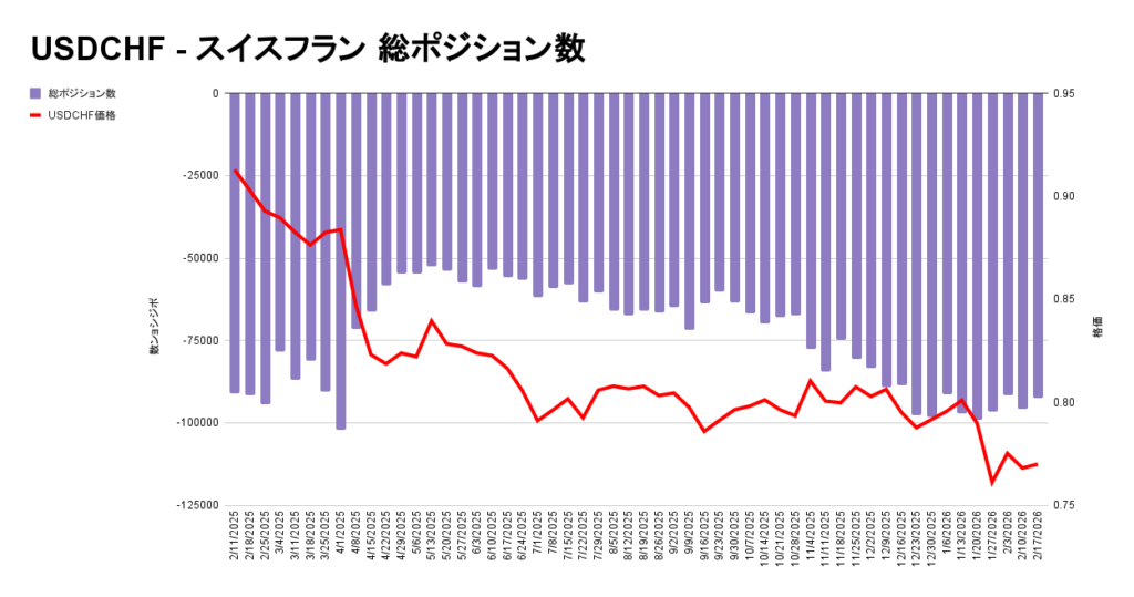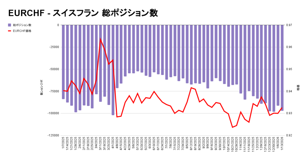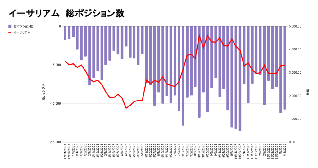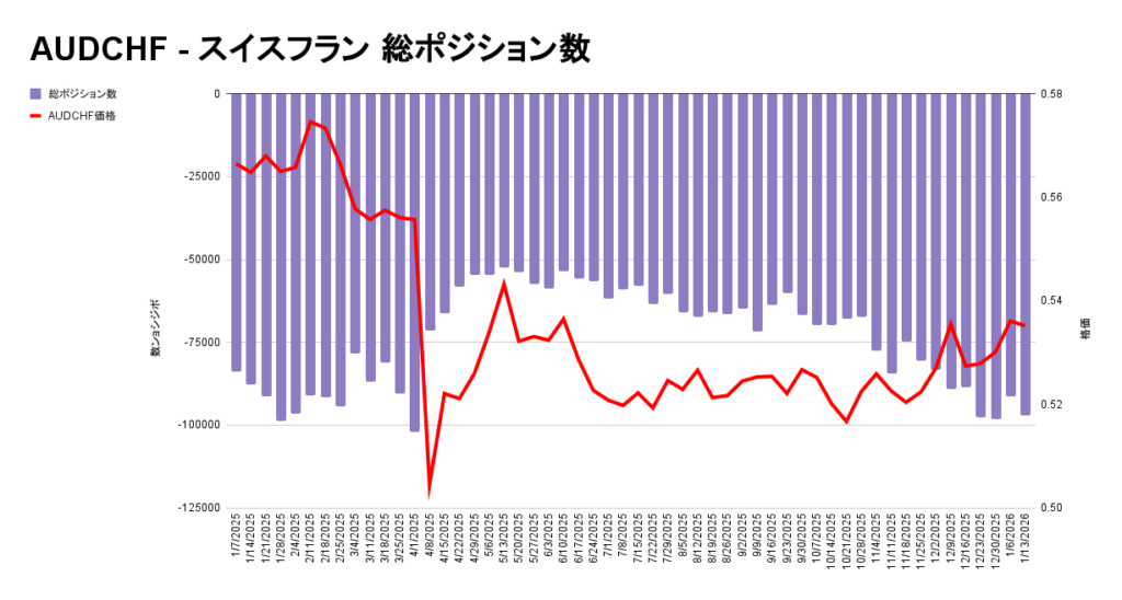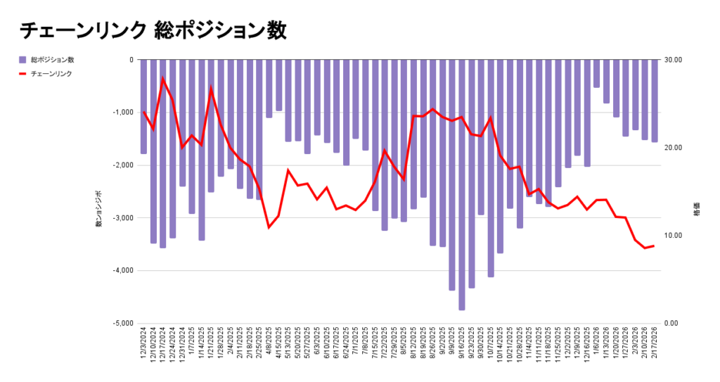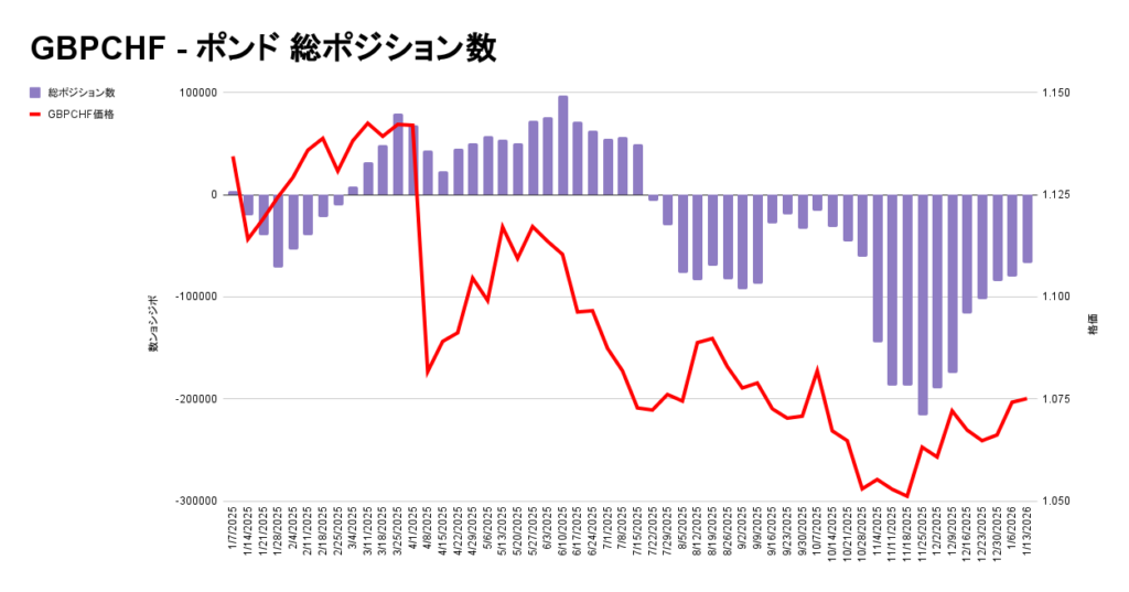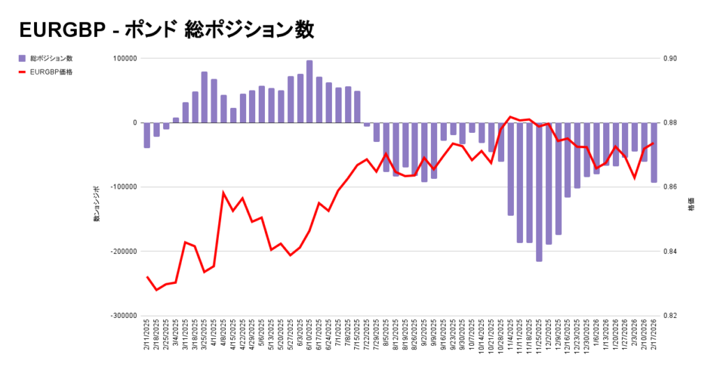 逆に0より下、つまりマイナスの値を取ると売りポジション量が多いということになります。