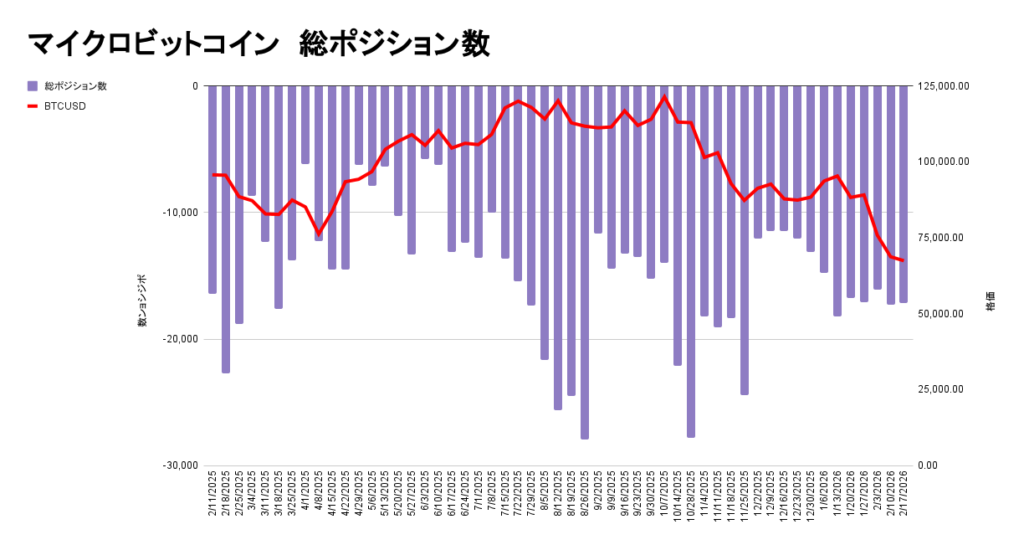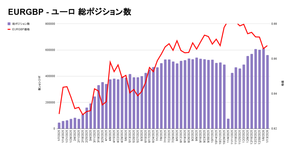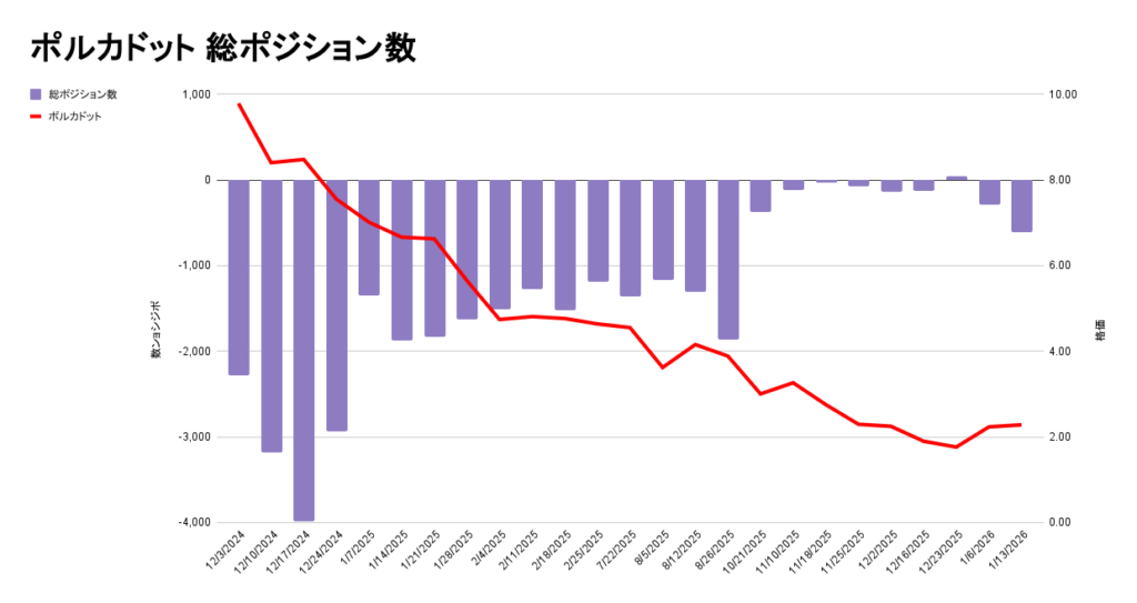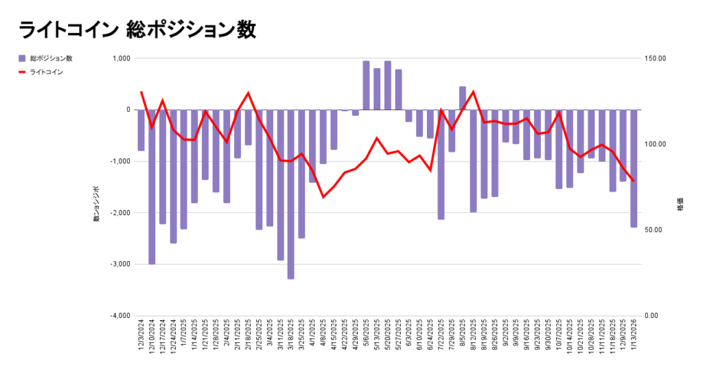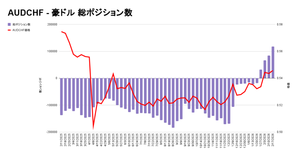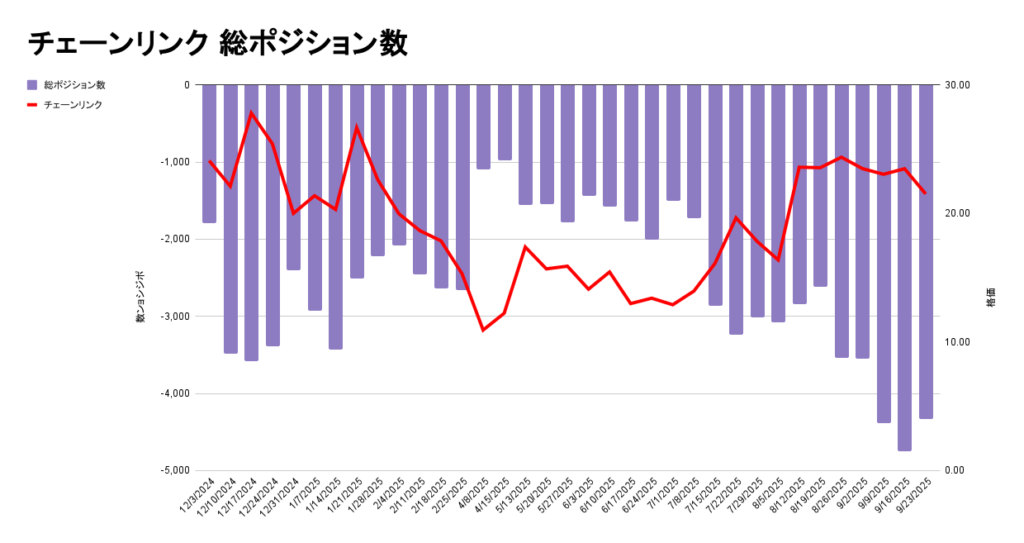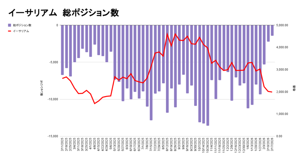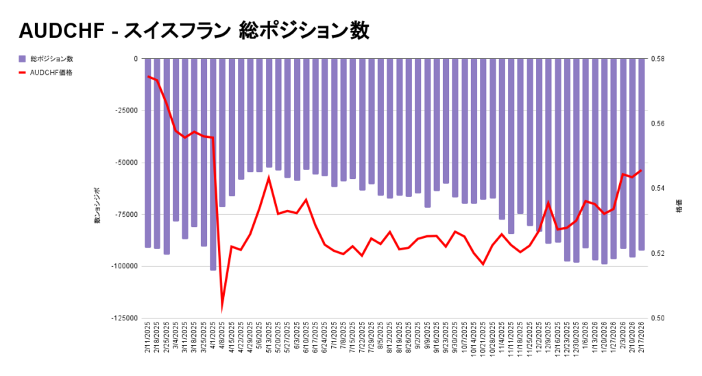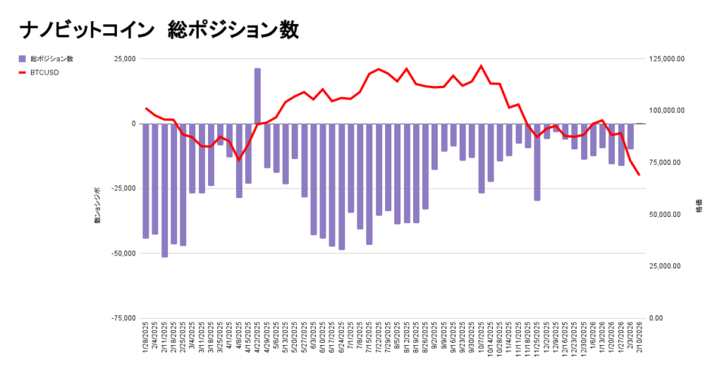 逆に0より下、つまりマイナスの値を取ると売りポジション量が多いということになります。
