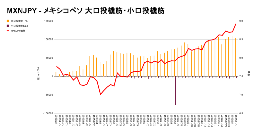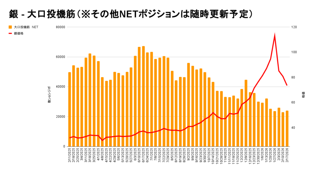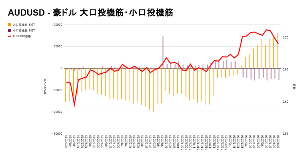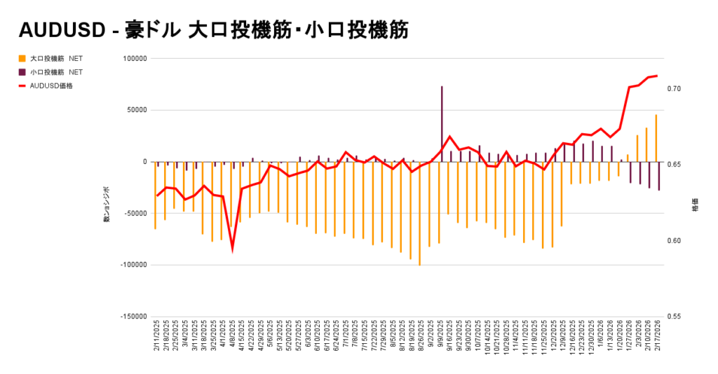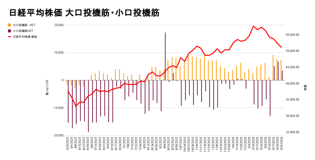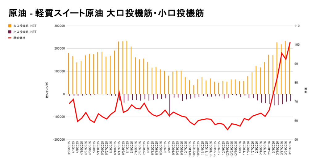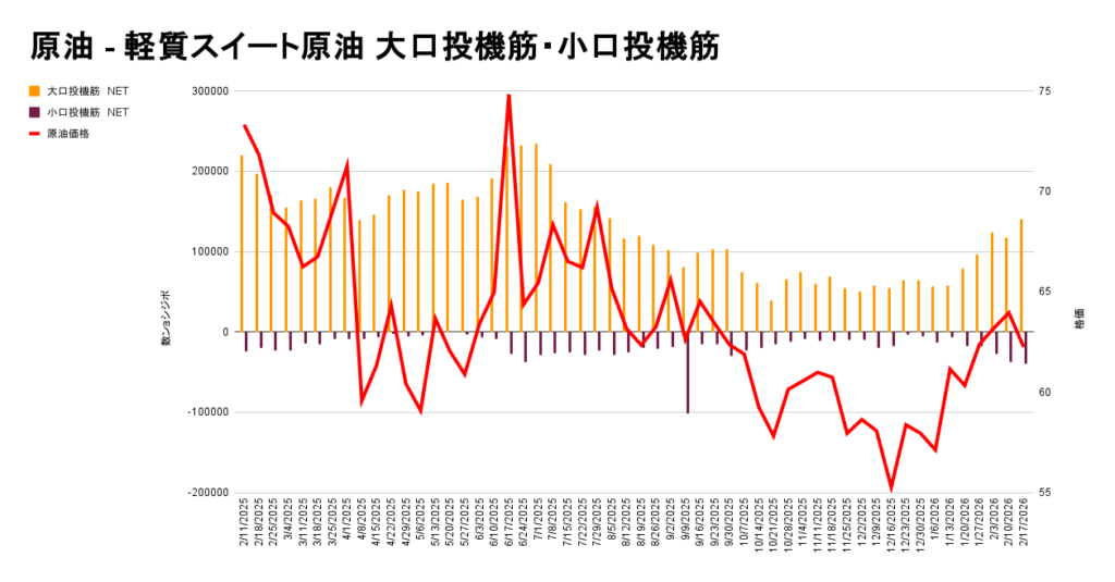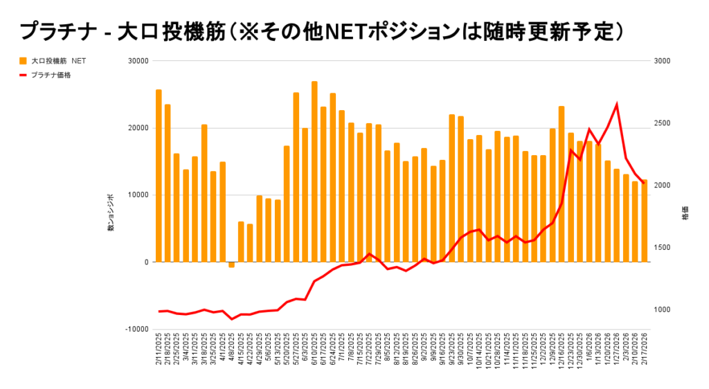また相場を操る御三家に加え、小口投機筋のポジション量も掲載しています。