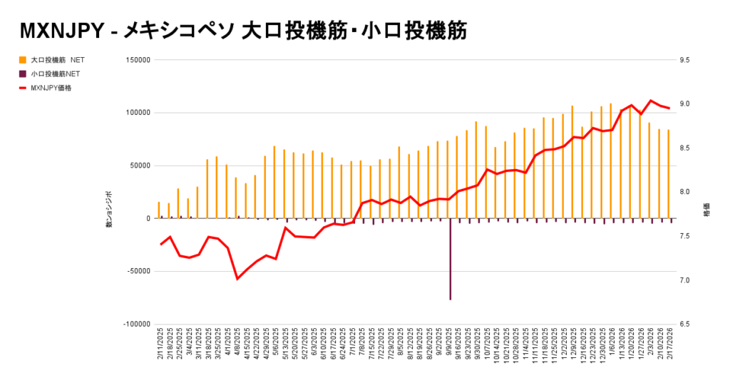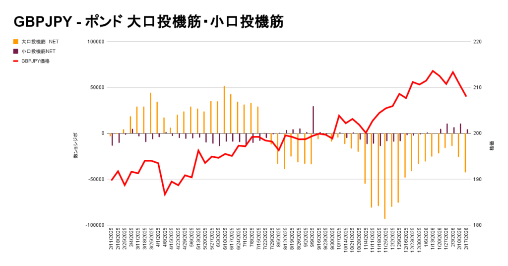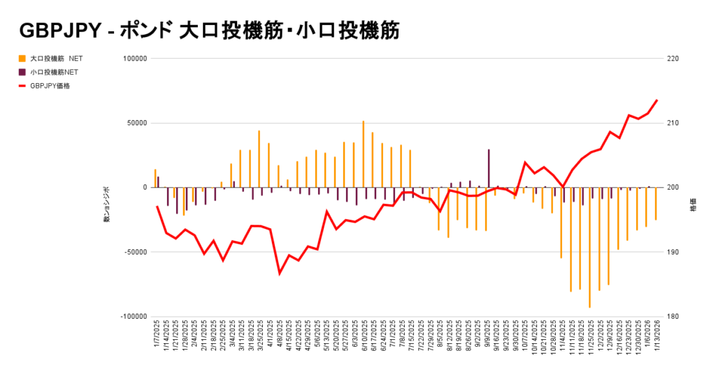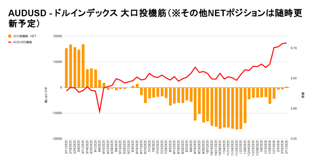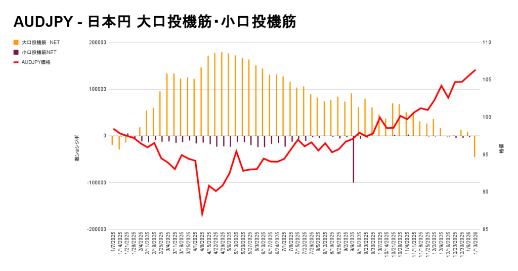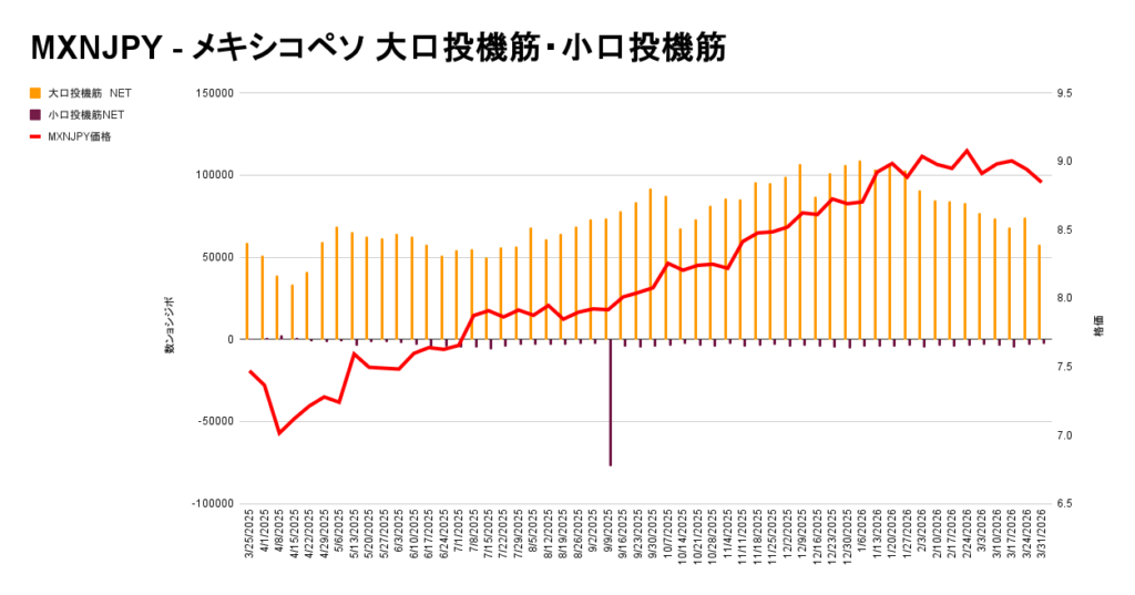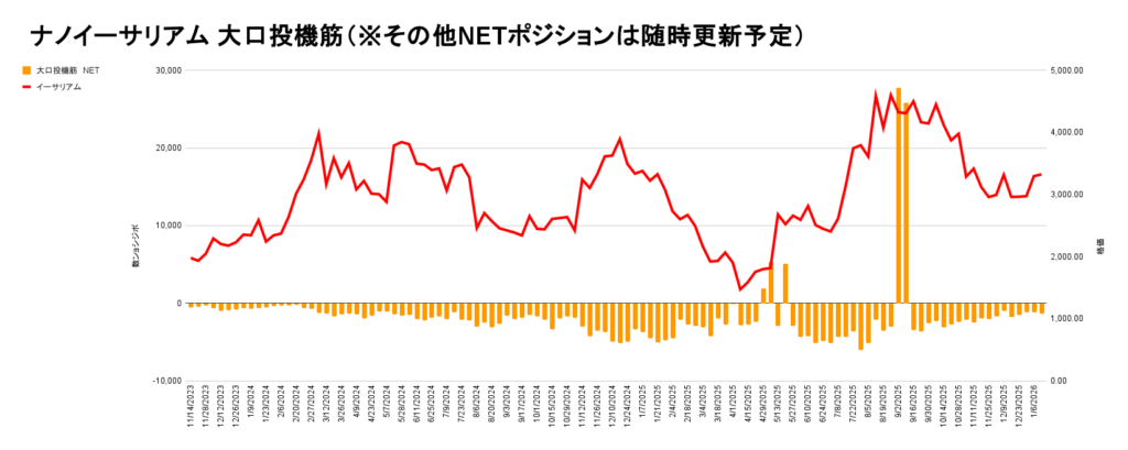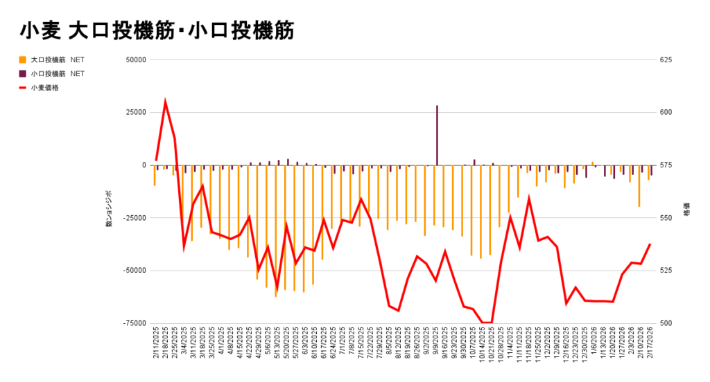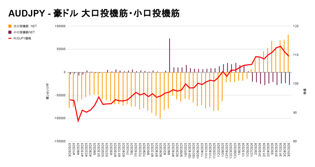 また相場を操る御三家に加え、小口投機筋のポジション量も掲載しています。