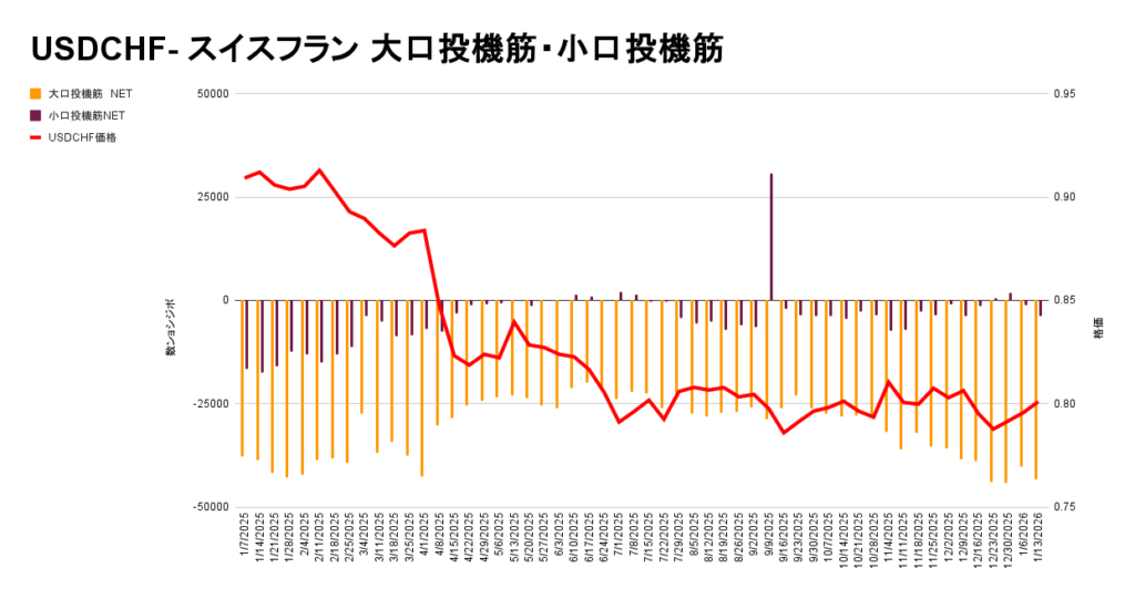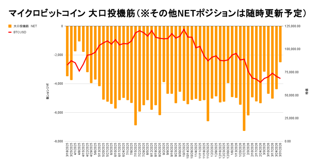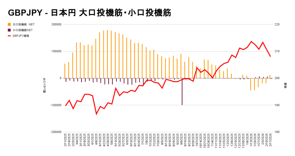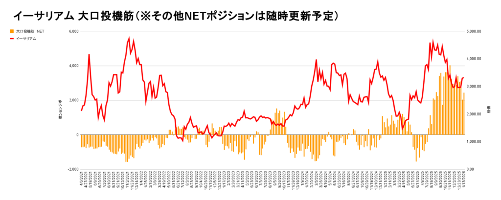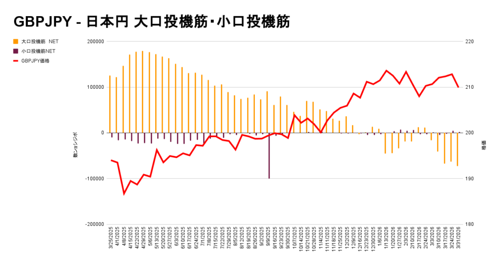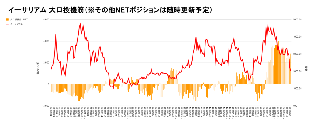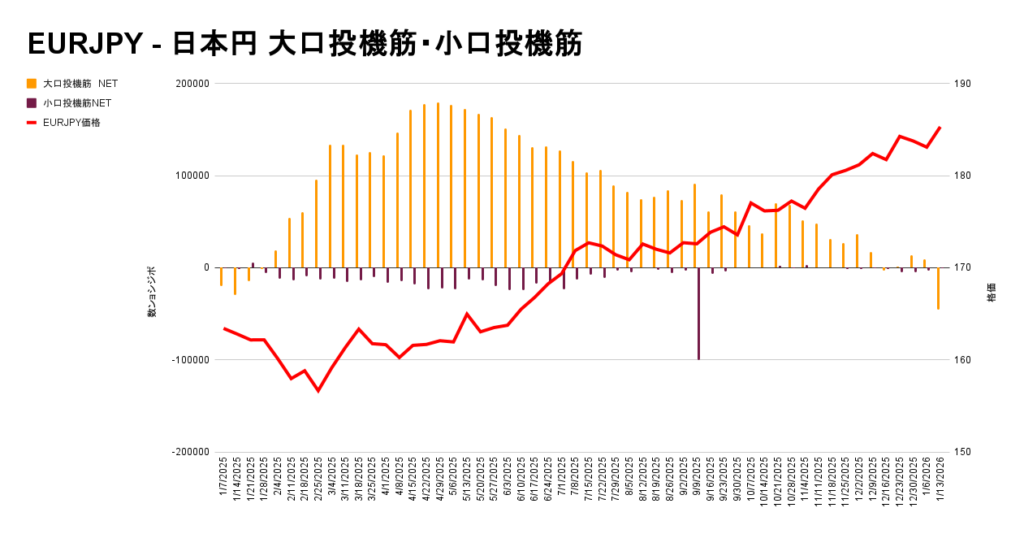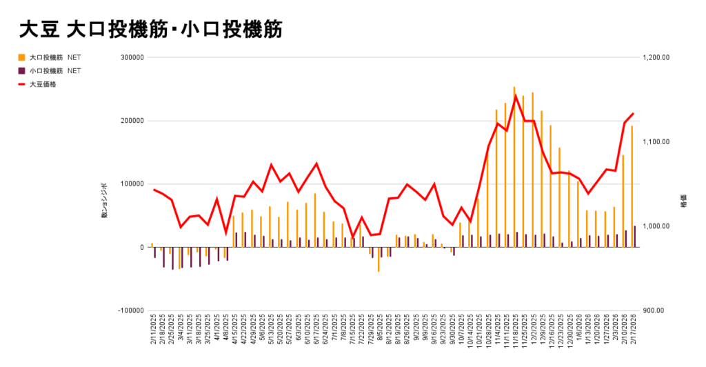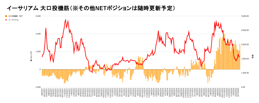 また相場を操る御三家に加え、小口投機筋のポジション量も掲載しています。