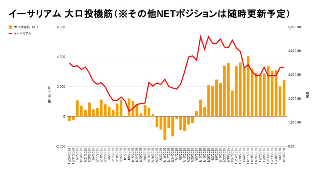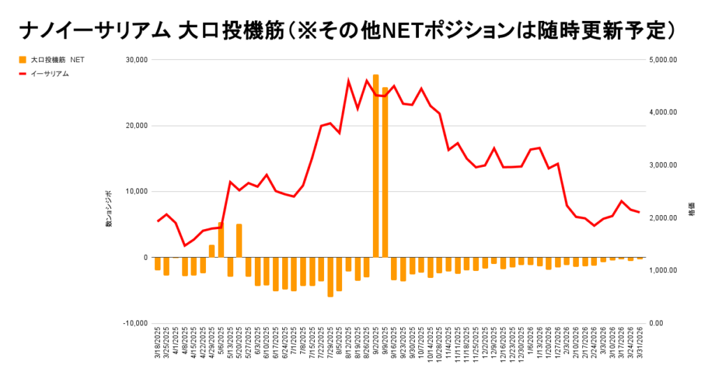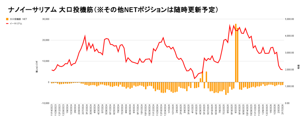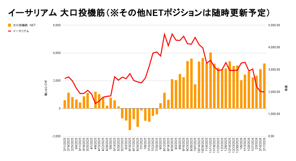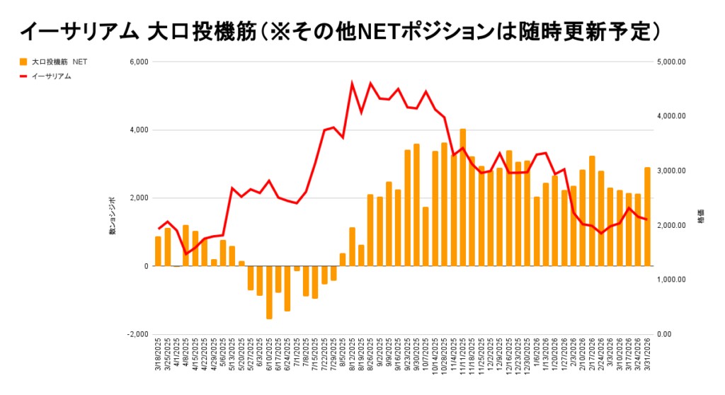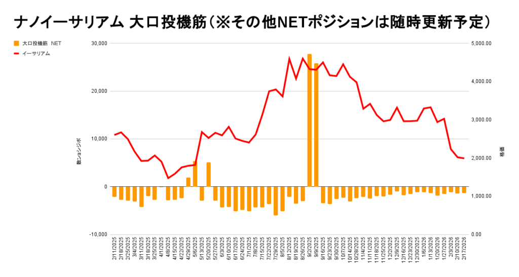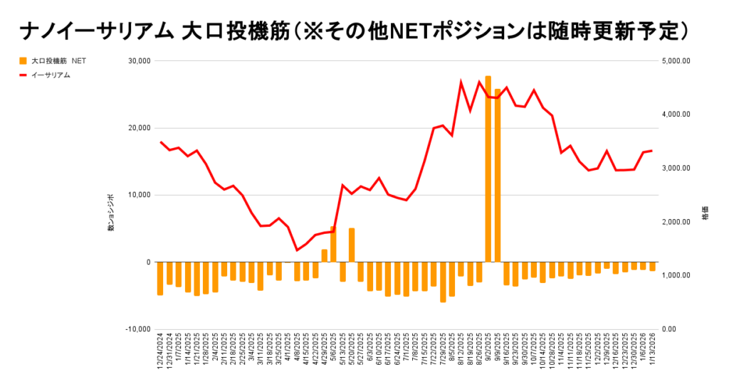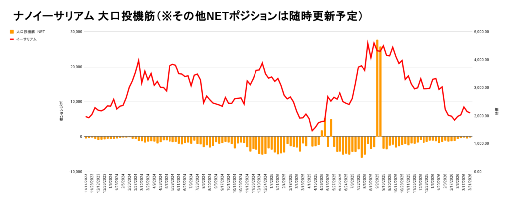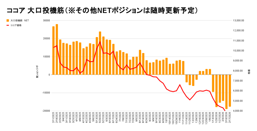 また相場を操る御三家に加え、小口投機筋のポジション量も掲載しています。