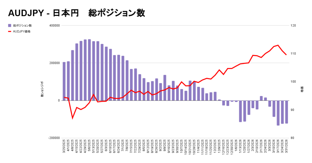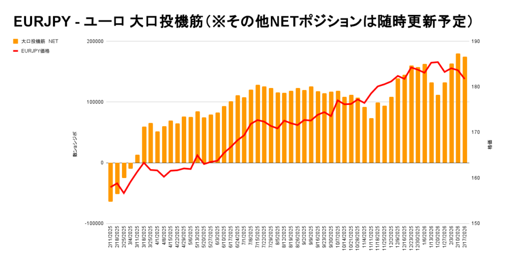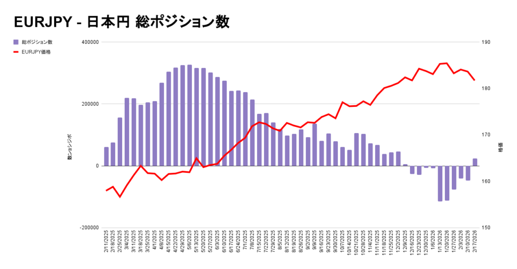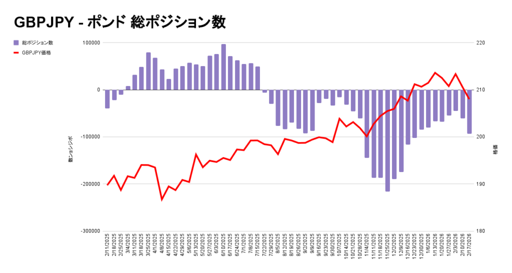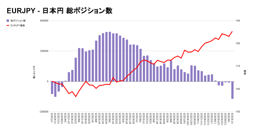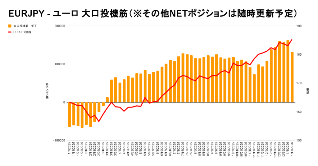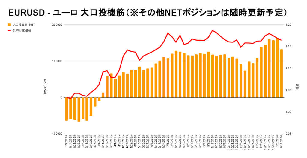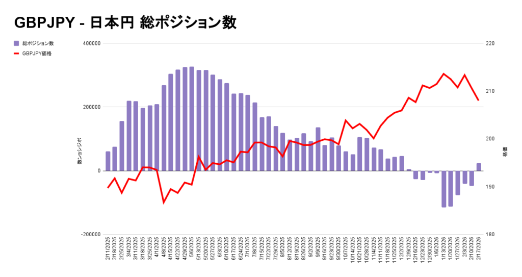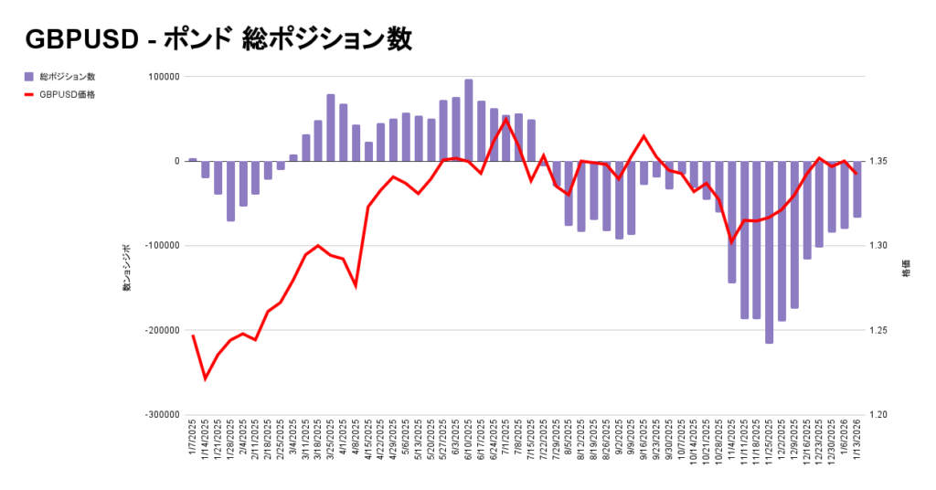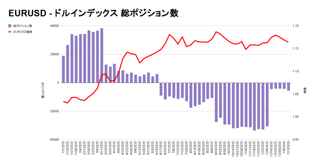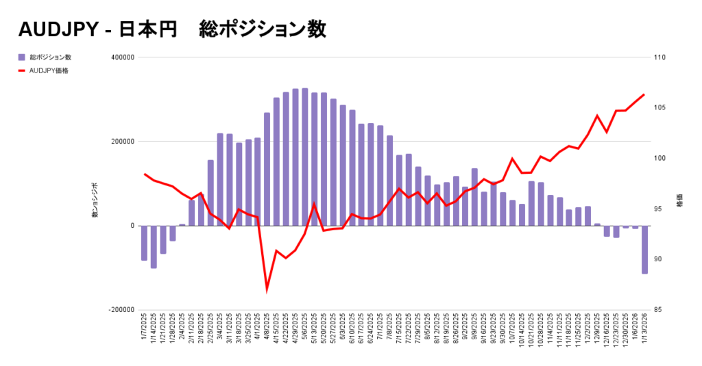 ここで投機筋チャートで掲載しているポジション量はNETポジションという形式を採用しています。
