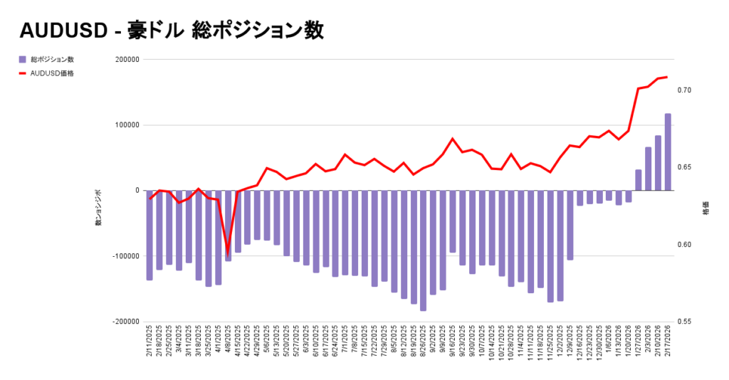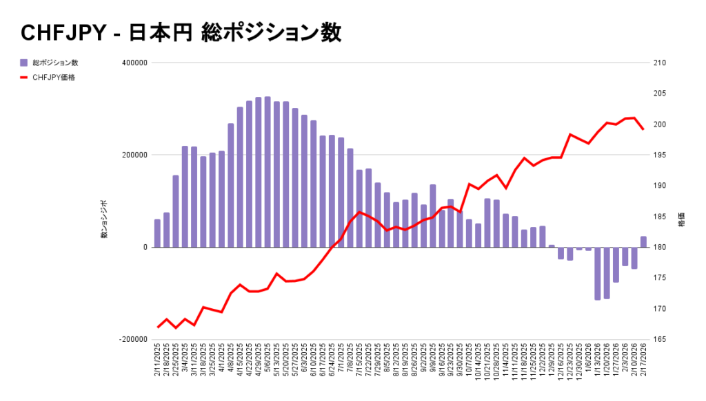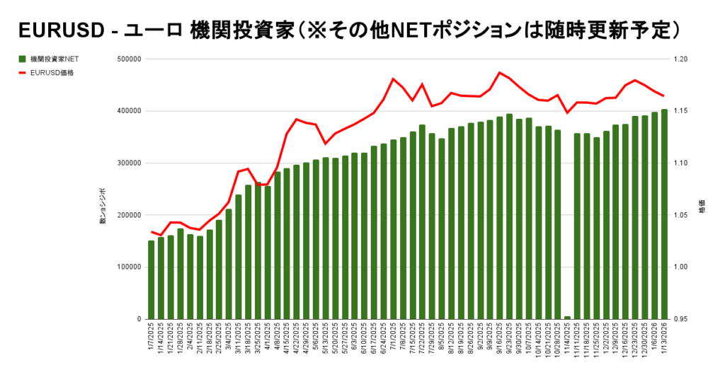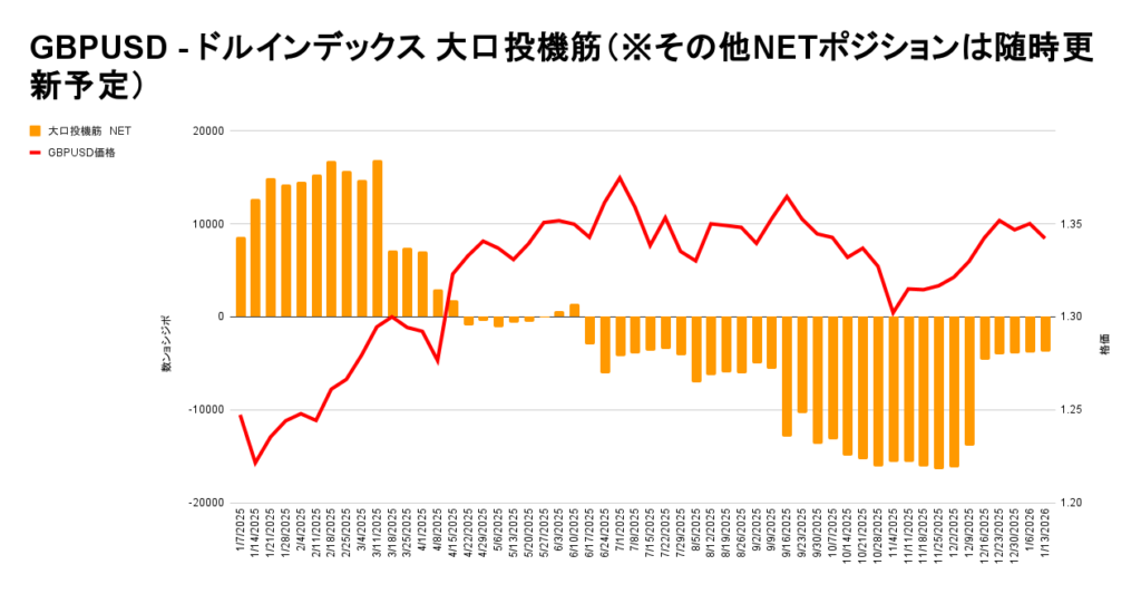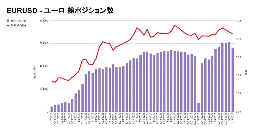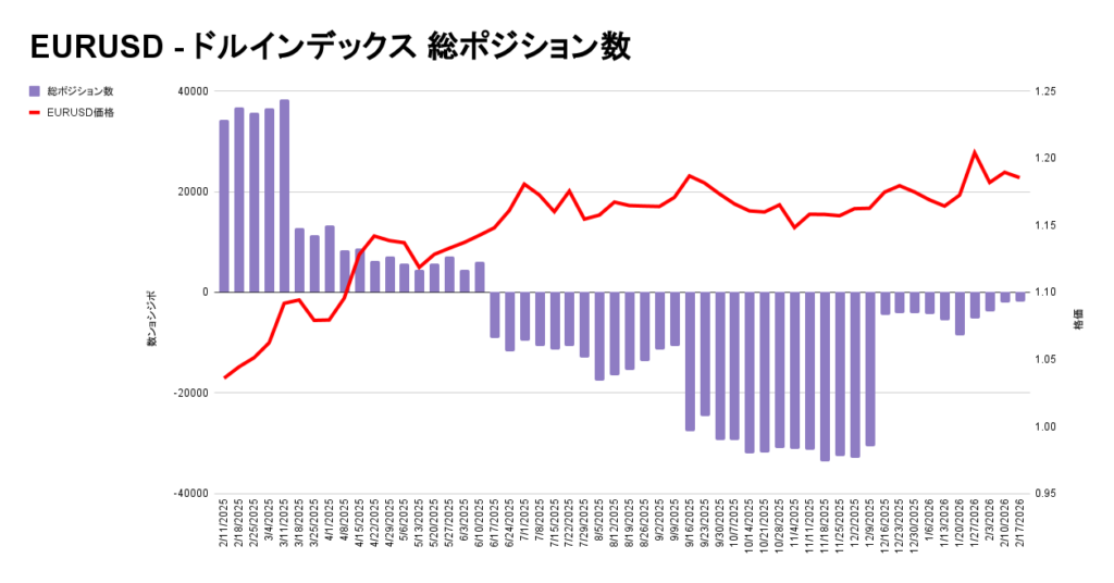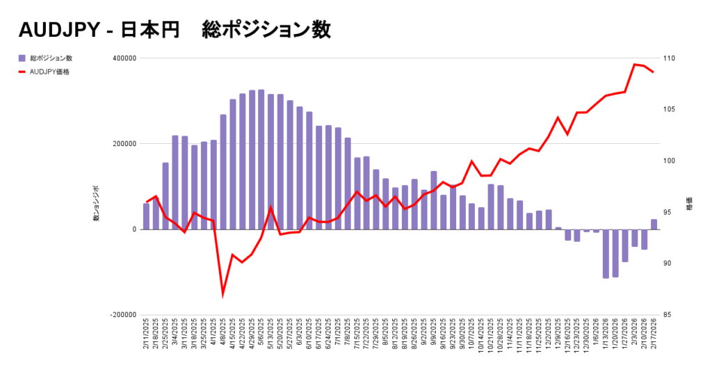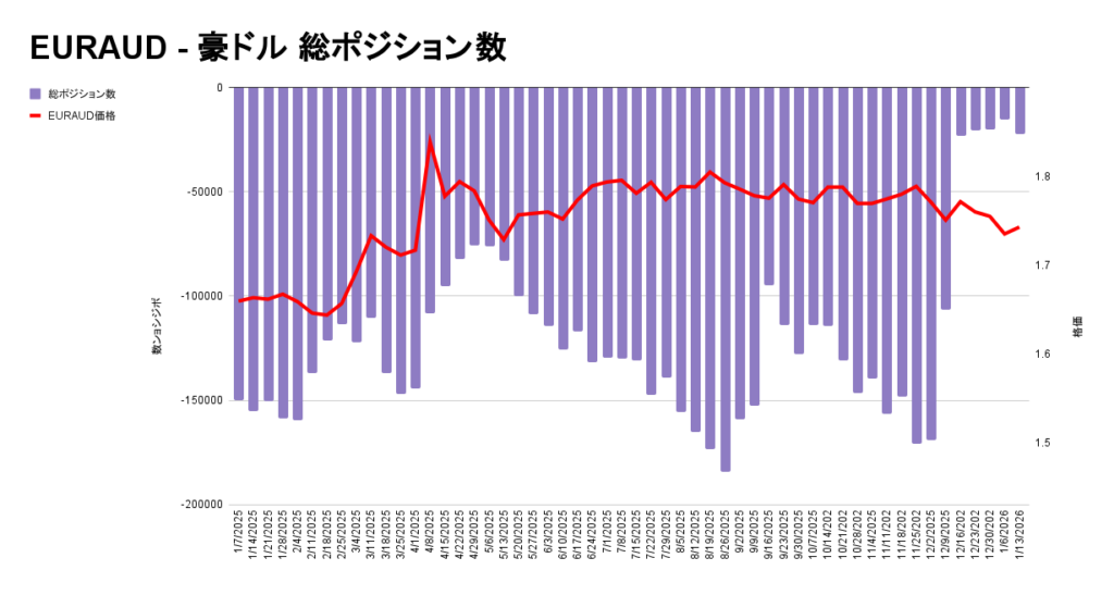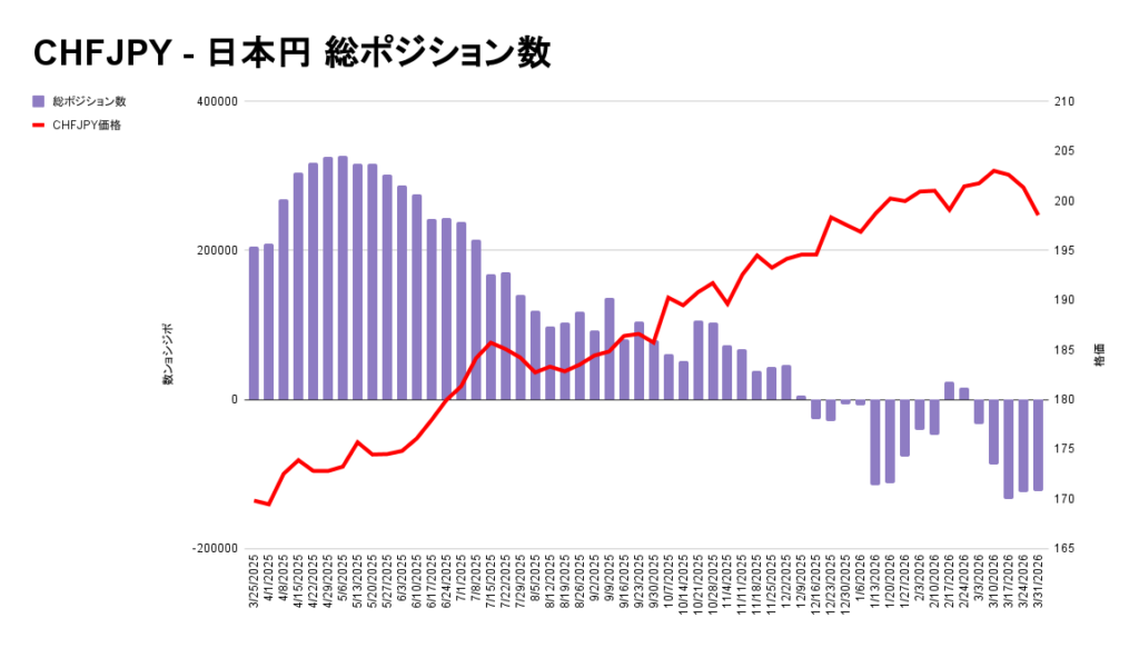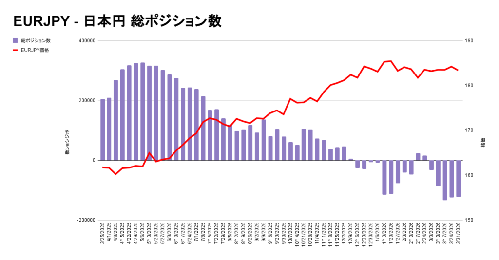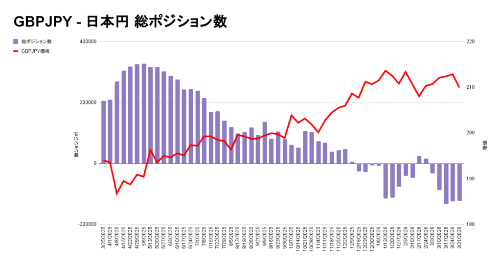 ここで投機筋チャートで掲載しているポジション量はNETポジションという形式を採用しています。