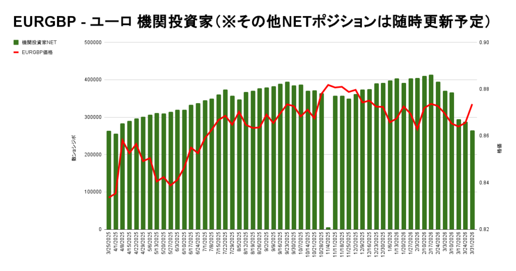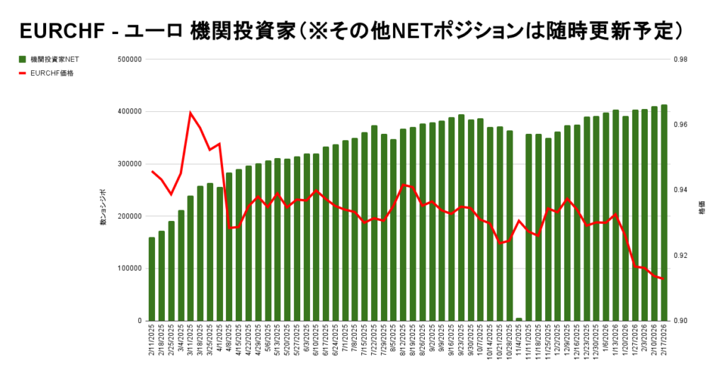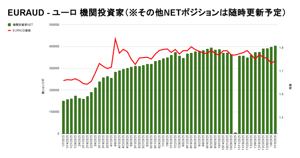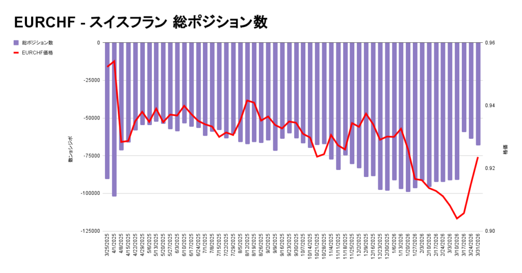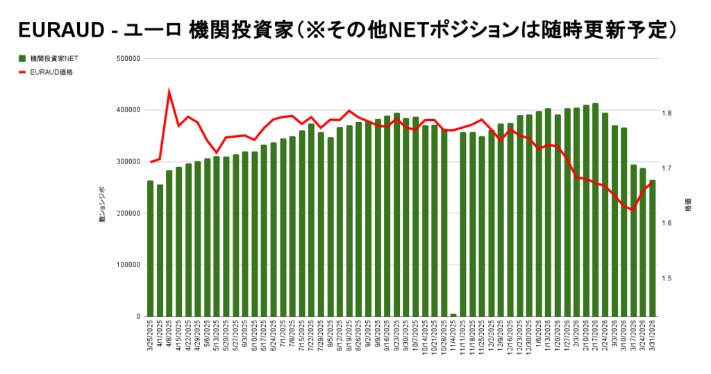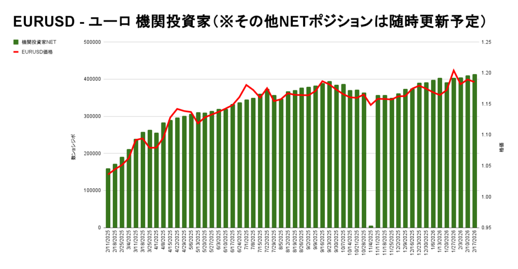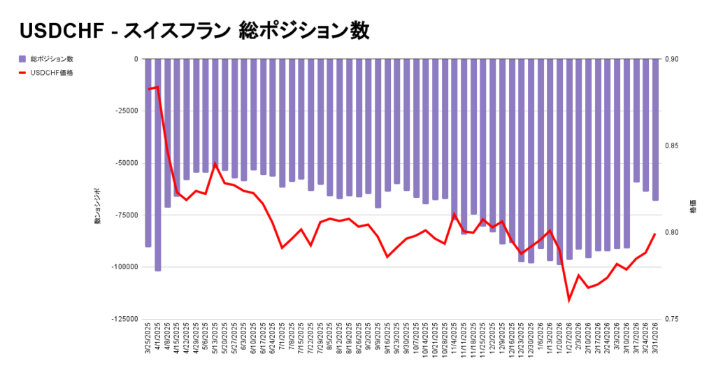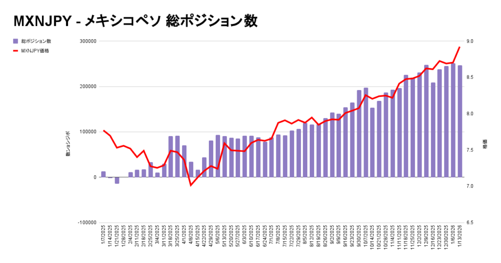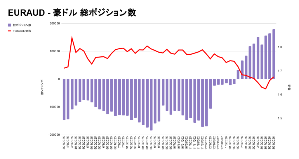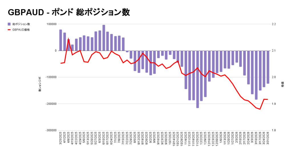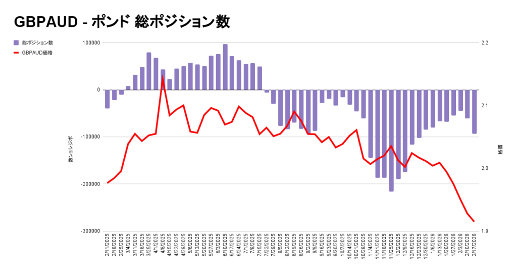 ここで投機筋チャートで掲載しているポジション量はNETポジションという形式を採用しています。