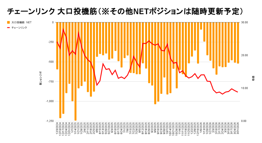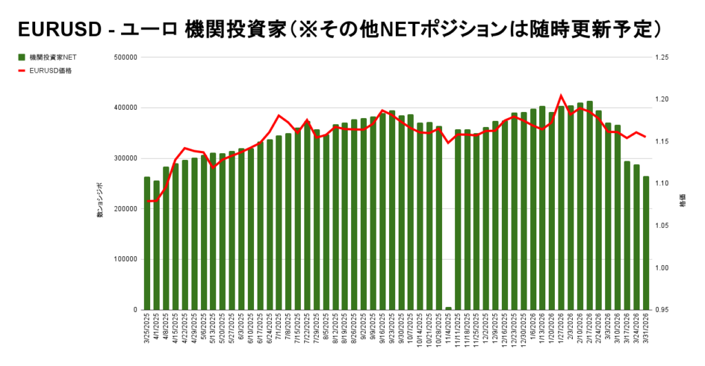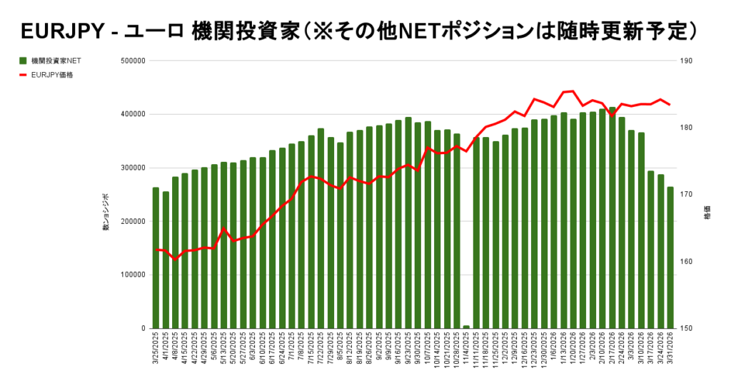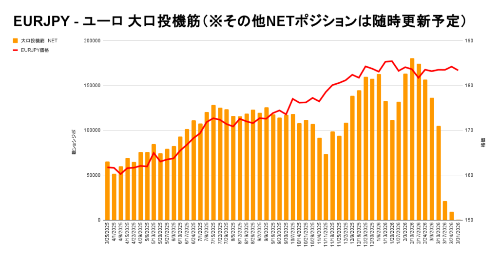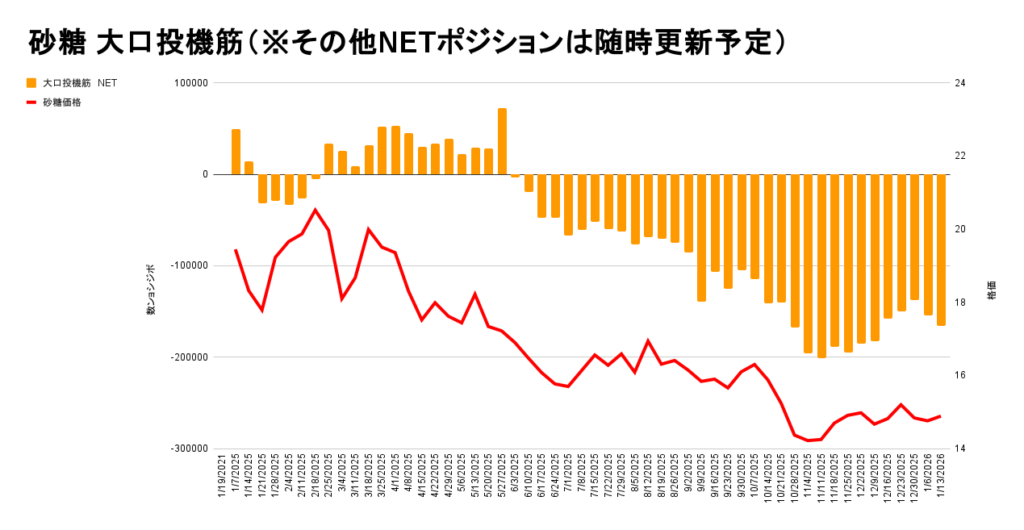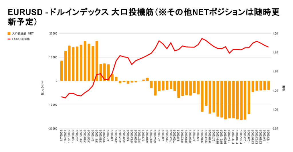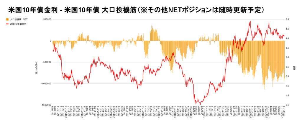 ブログで公開している投機筋チャートは一部除いて直近1年分のNETポジションをまとめています。